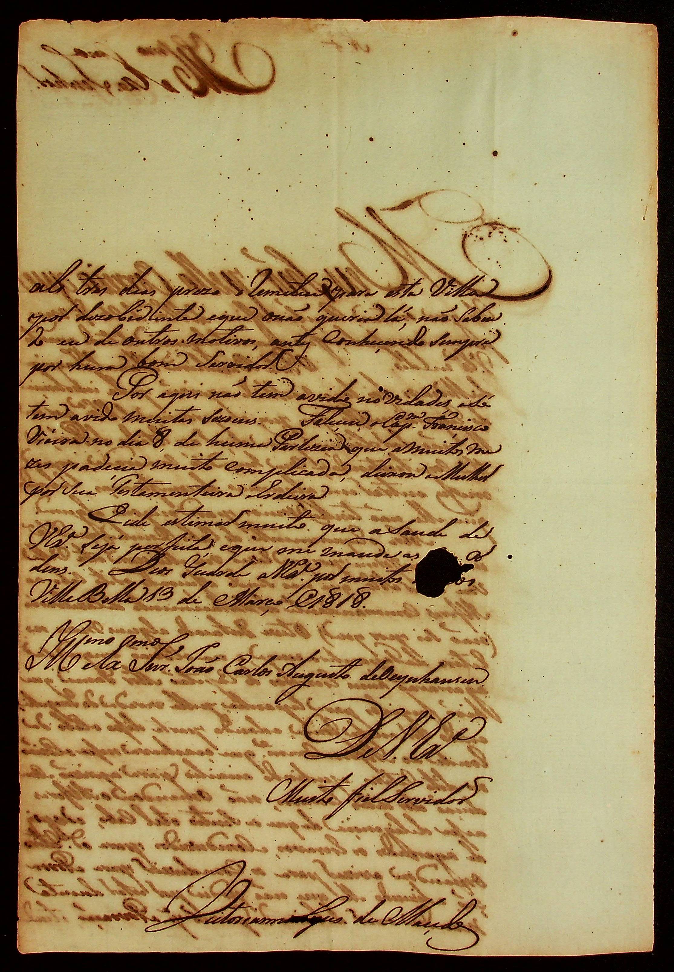 CARTA de Victoriano Lopes de Macedo ao [Governador e Capitão-General da Capitania de Mato Grosso] João Carlos Augusto d’Oeynhausen e Gravenberg.