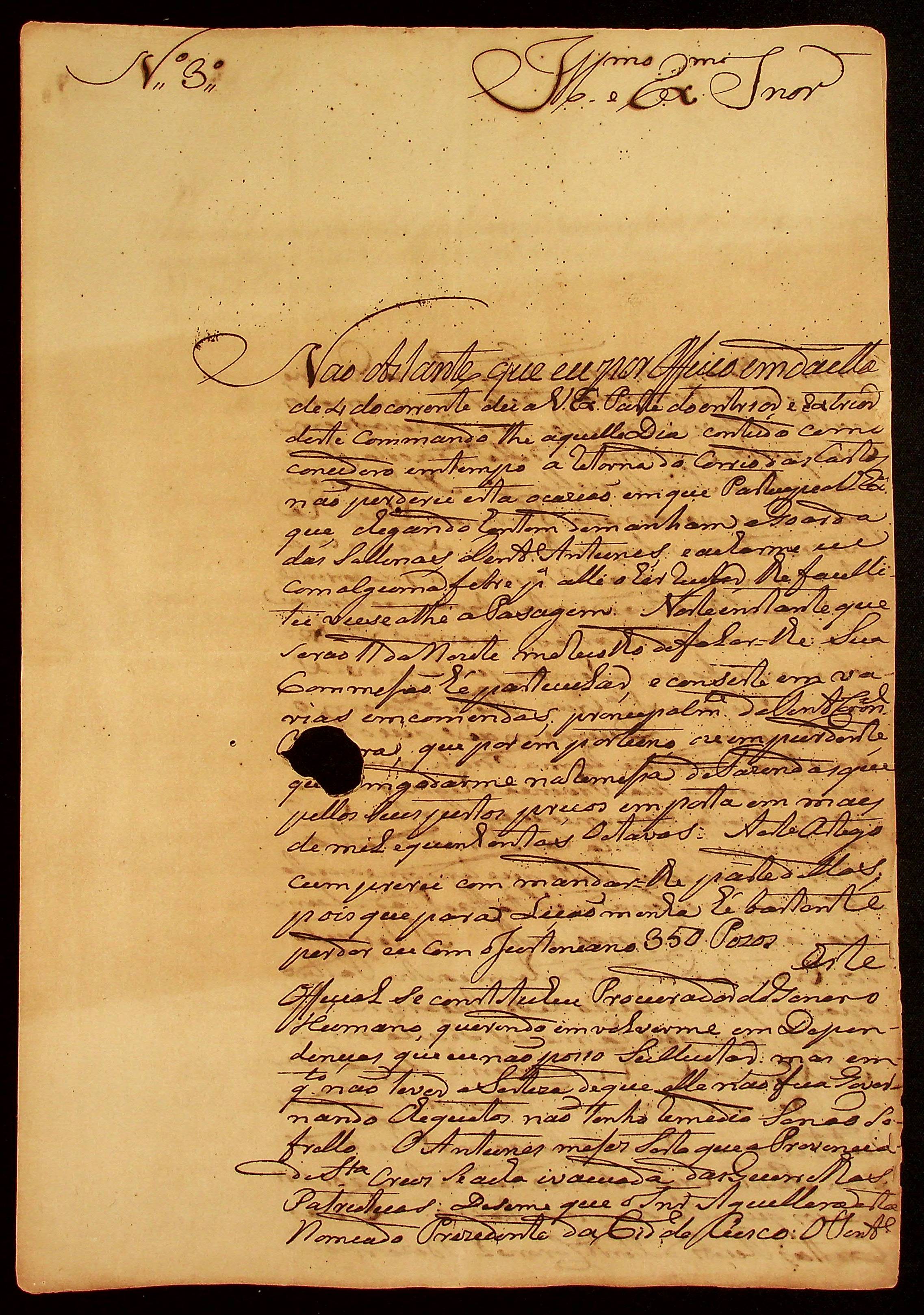 CARTA de Luiz Antônio Souza ao [Governador e Capitão-General da Capitania de Mato Grosso] João Carlos Augusto D' Oeynhausn e Gravenberg.