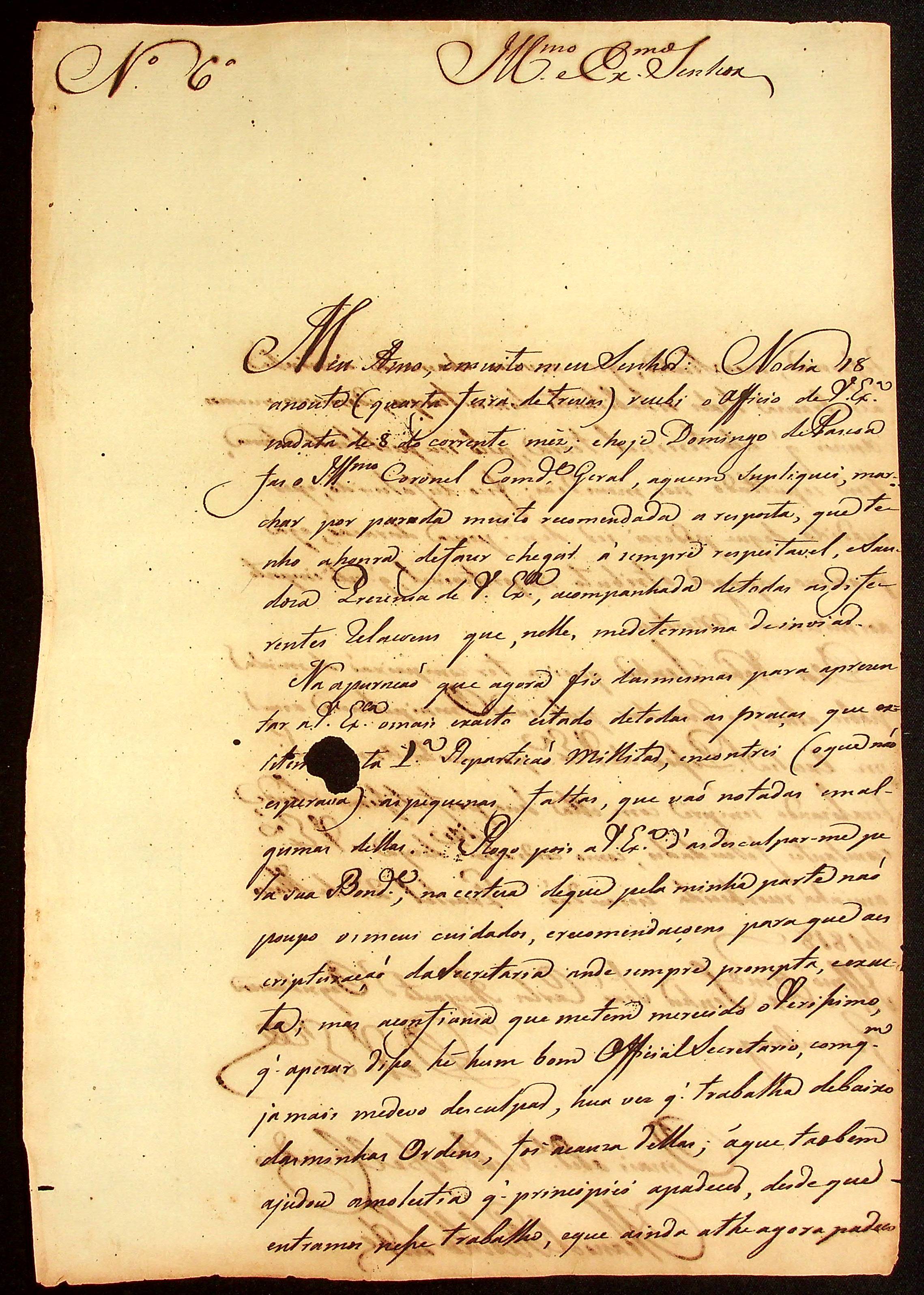 CARTA de Manoel [Rabelo] Leite ao [Governador e Capitão-General da Capitania de Mato Grosso] João Carlos Augusto d’Oeynhausen e Gravenberg.