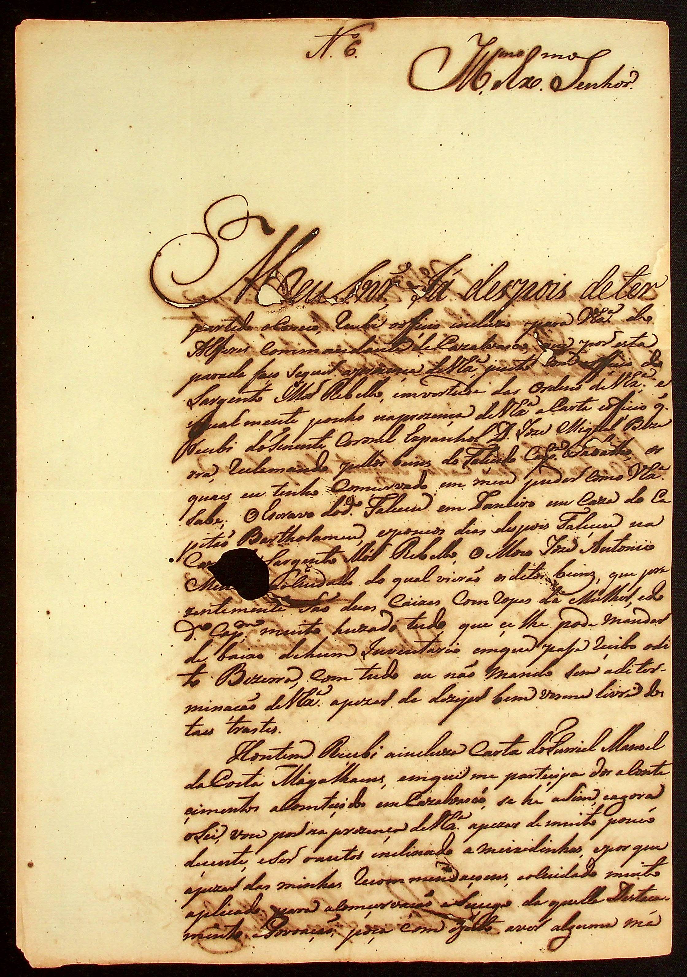 CARTA do [Coronel Comandante Geral] Victoriano Lopes de Macedo ao [Governador e Capitão-General da Capitania de Mato Grosso] João Carlos Augusto d’Oeynhausen e Gravenberg.