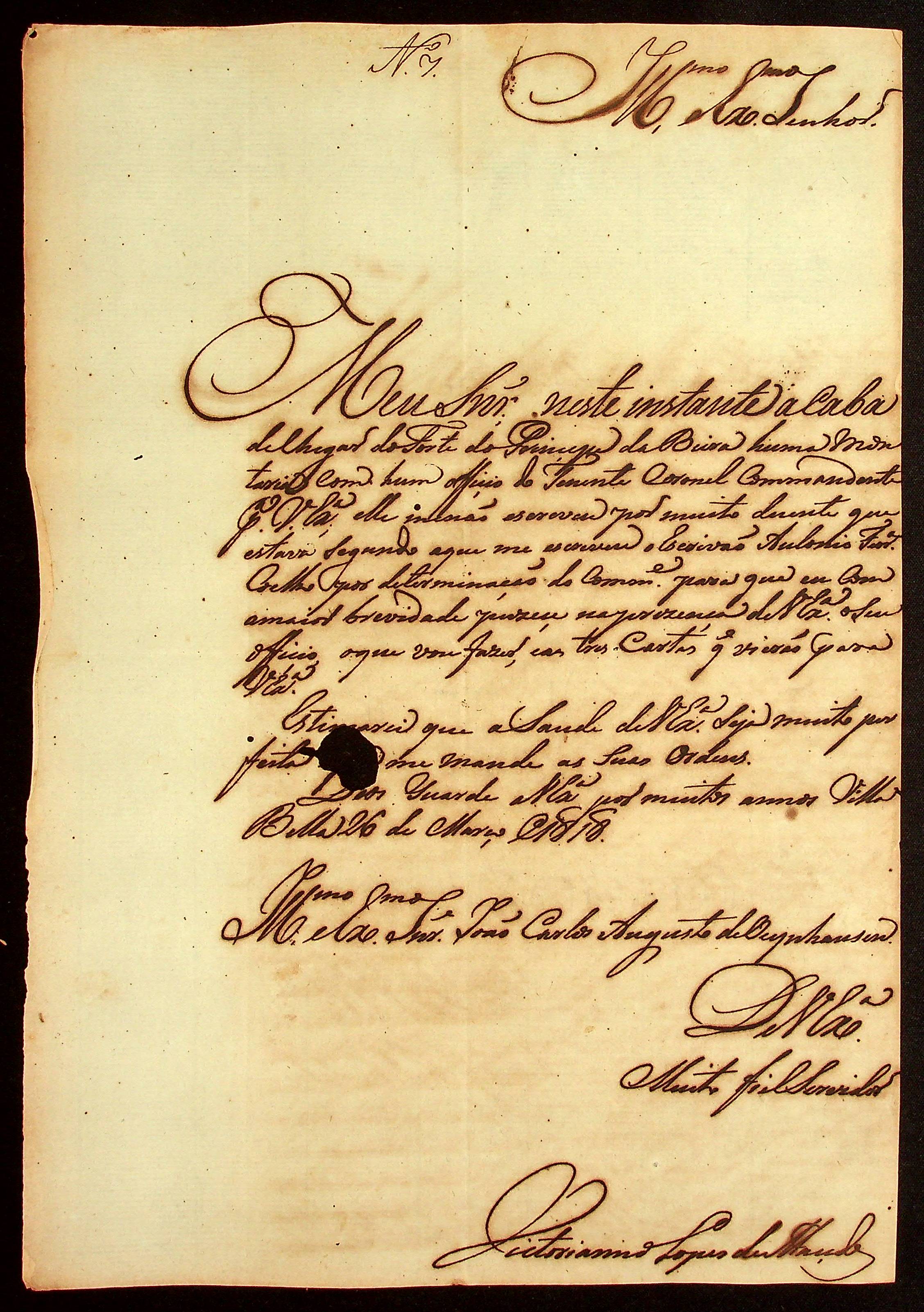 CARTA do [Coronel Comandante Geral] Victoriano Lopes de Macedo ao [Governador e Capitão-General da Capitania de Mato Grosso] João Carlos Augusto d’Oeynhausen e Gravenberg.