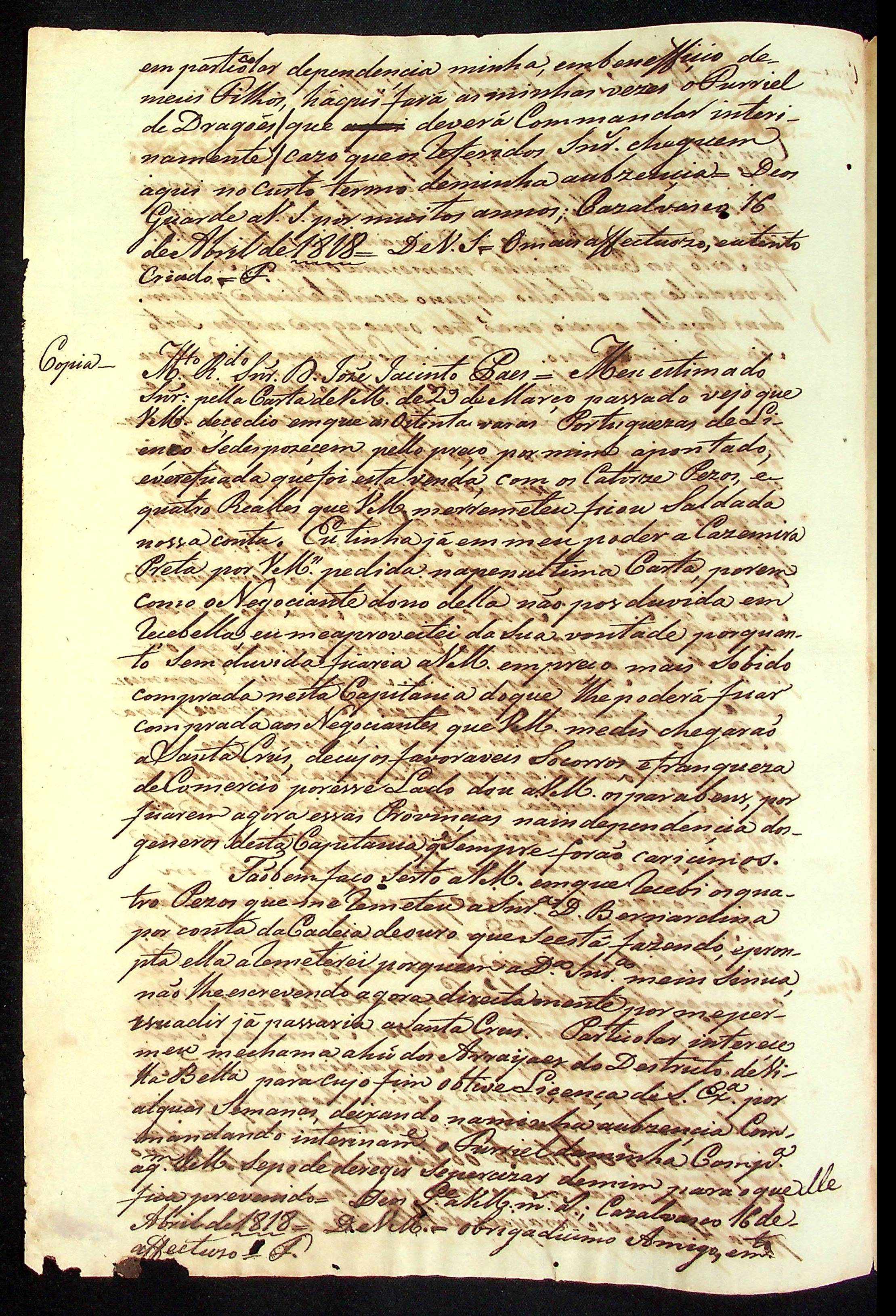 CARTA (cópia) ao Tenente-Coronel José Miguel Bezerra.