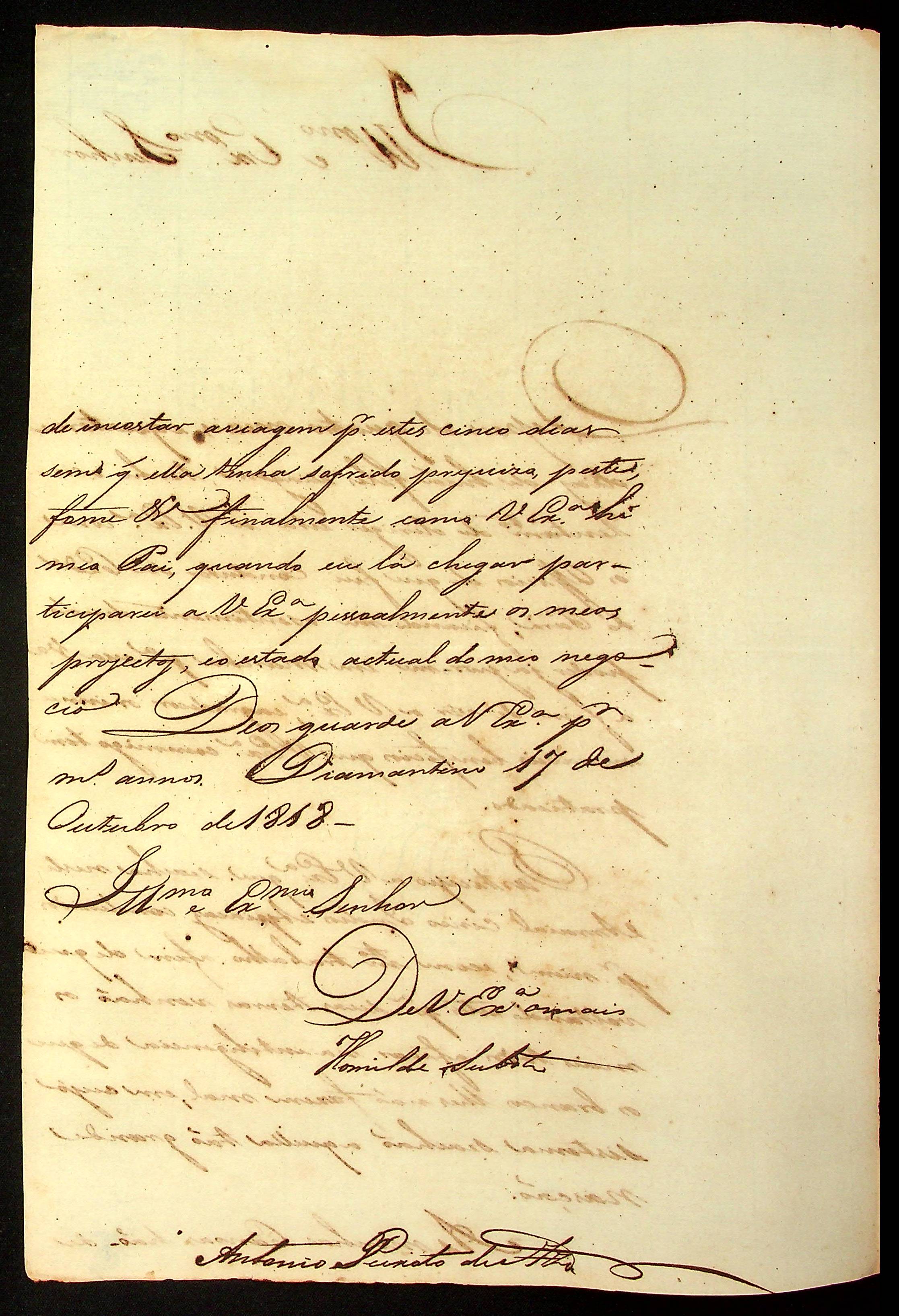 CARTA de Antônio Peixoto de Azevedo ao [Governador e Capitão-General da Capitania de Mato Grosso] João Carlos Augusto d’Oeynhausen e Gravenberg.