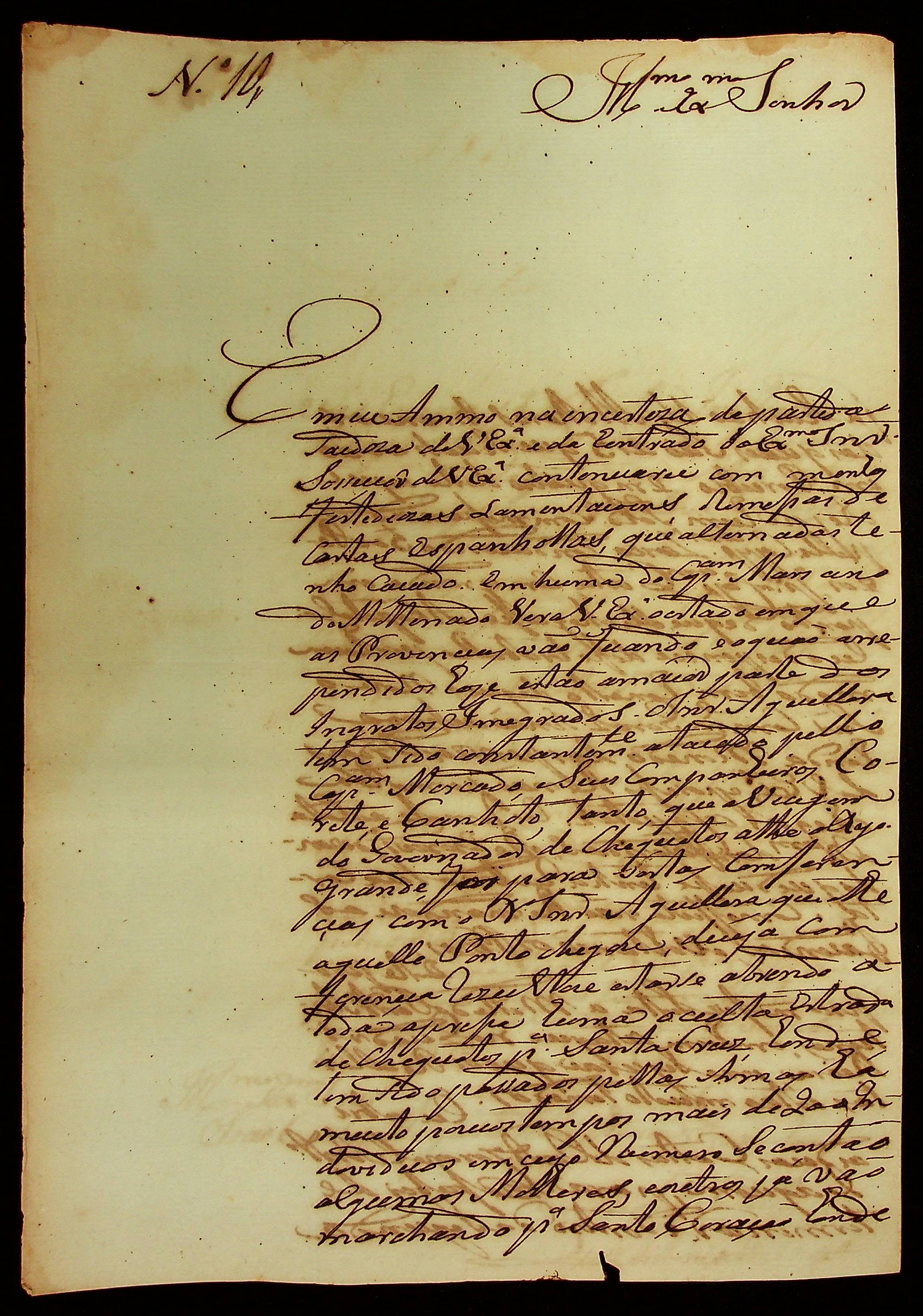 CARTA de Luís Antônio de Souza ao [Governador e Capitão-General da Capitania de Mato Grosso] João Carlos Augusto d’Oeynhausen e Gravenberg.