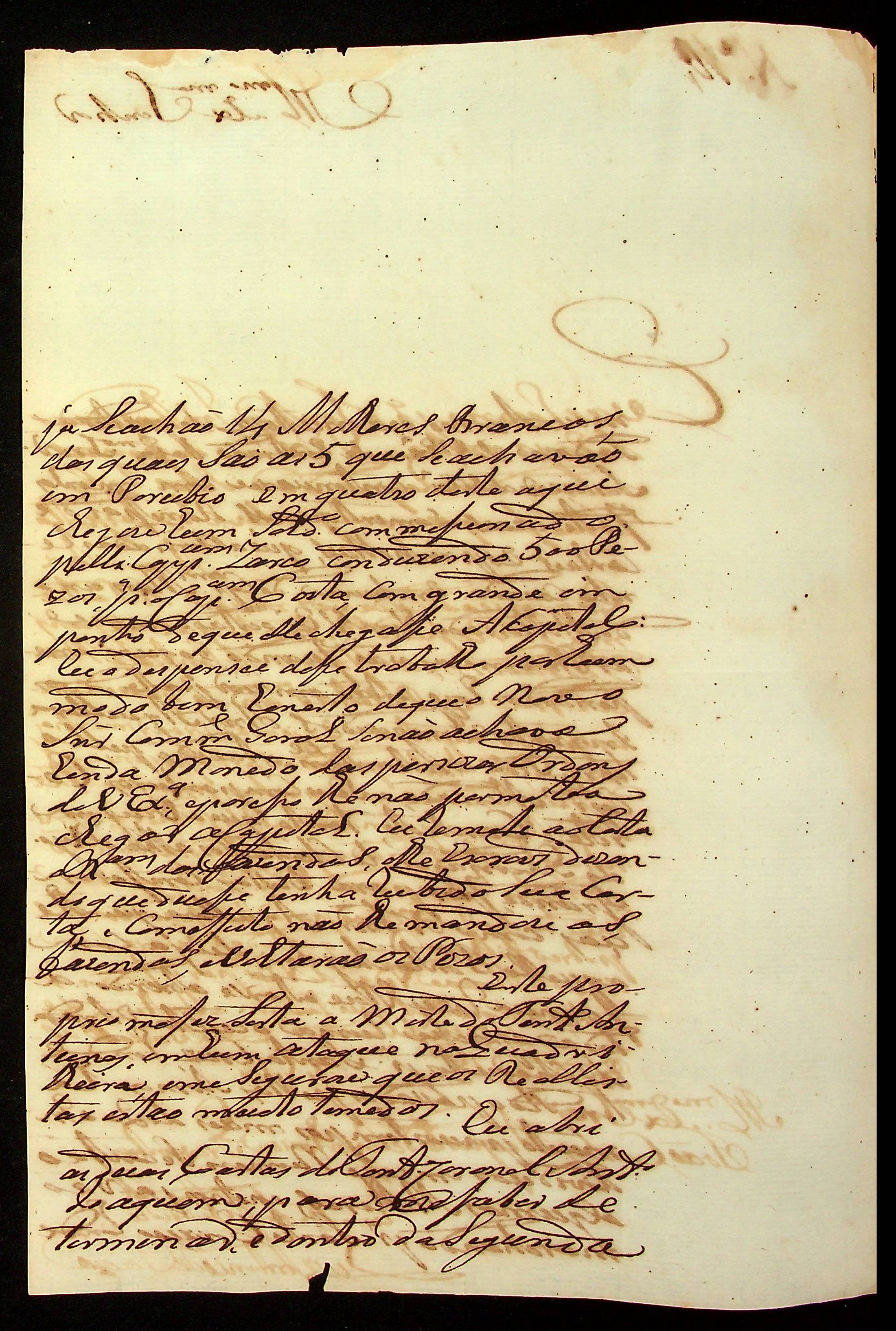 CARTA de Luís Antônio de Souza ao [Governador e Capitão-General da Capitania de Mato Grosso] João Carlos Augusto d’Oeynhausen e Gravenberg.