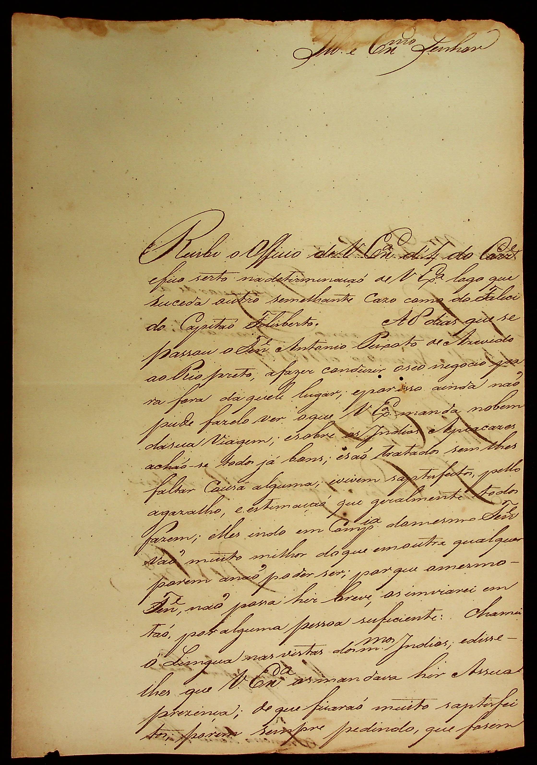 CARTA de Francisco Xavier Ribeiro ao [Governador e Capitão-General da Capitania de Mato Grosso] João Carlos Augusto d’Oeynhausen e Gravenberg.