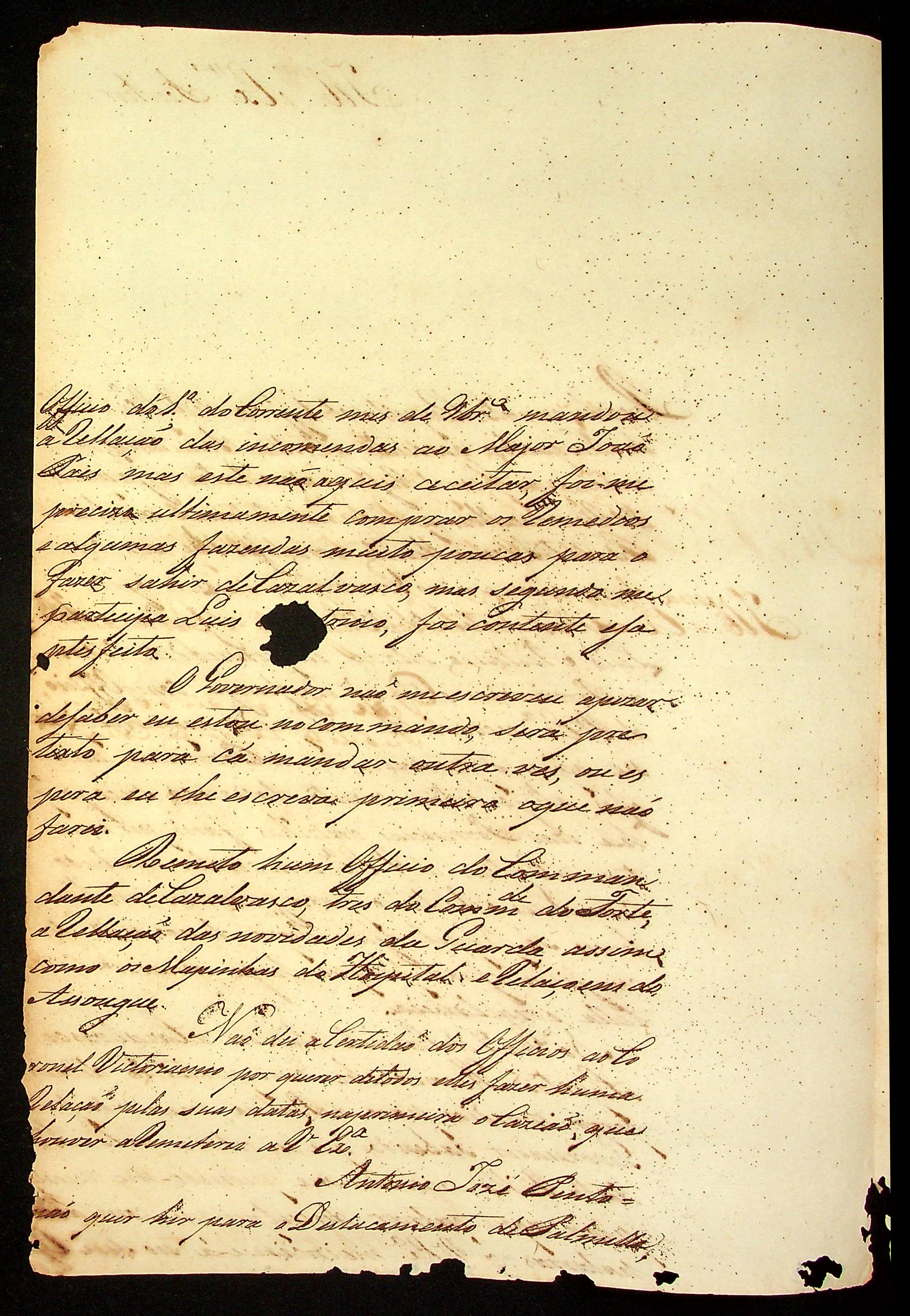CARTA de Manoel Antônio Pinto ao [Governador e Capitão-General da Capitania de Mato Grosso] João Carlos Augusto d’Oeynhausen e Gravenberg.