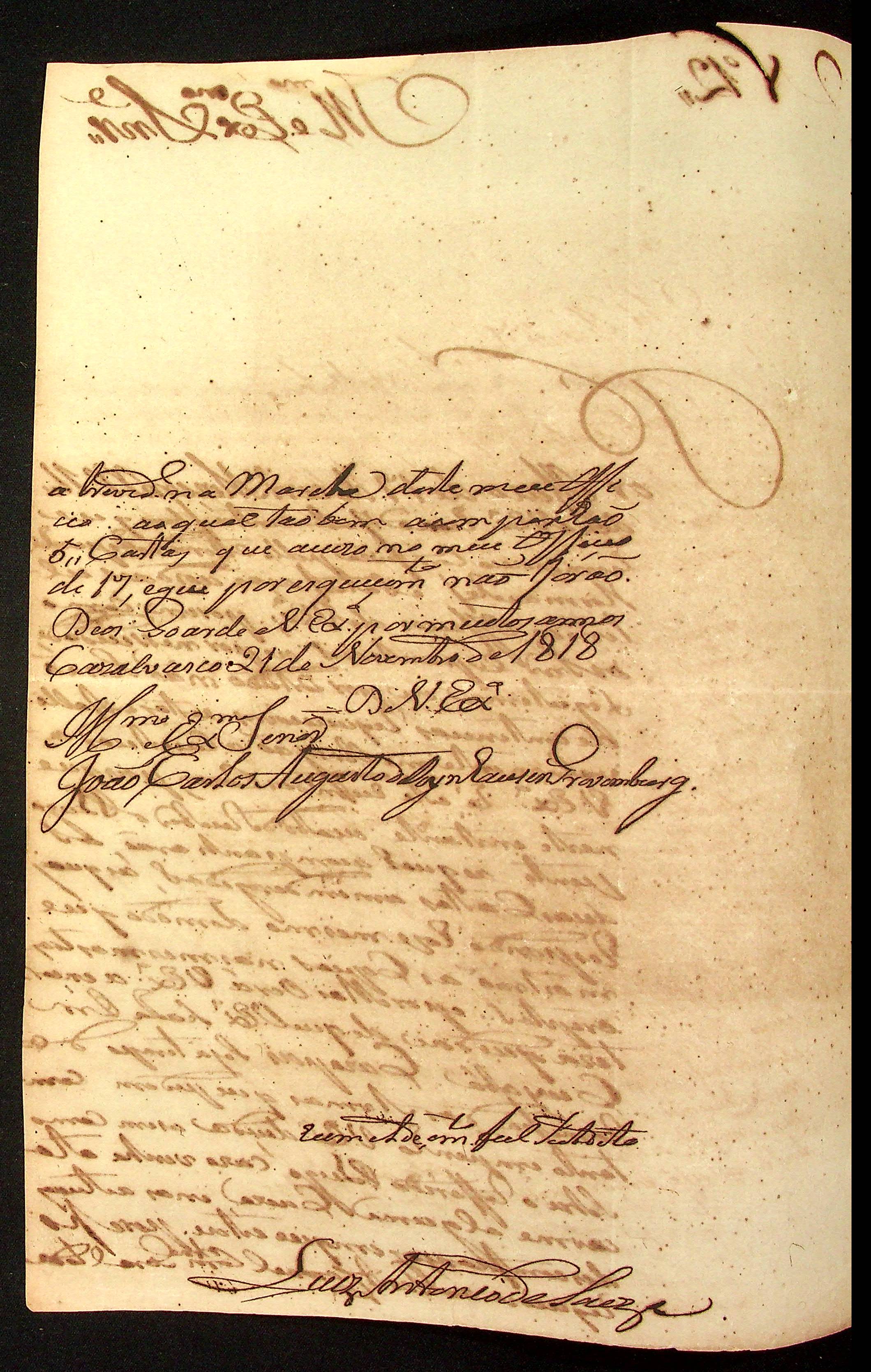 CARTA do Tenente Luís Antônio de Sousa ao [Governador e Capitão-General da Capitania de Mato Grosso] João Carlos Augusto d’Oeynhausen e Gravenberg.