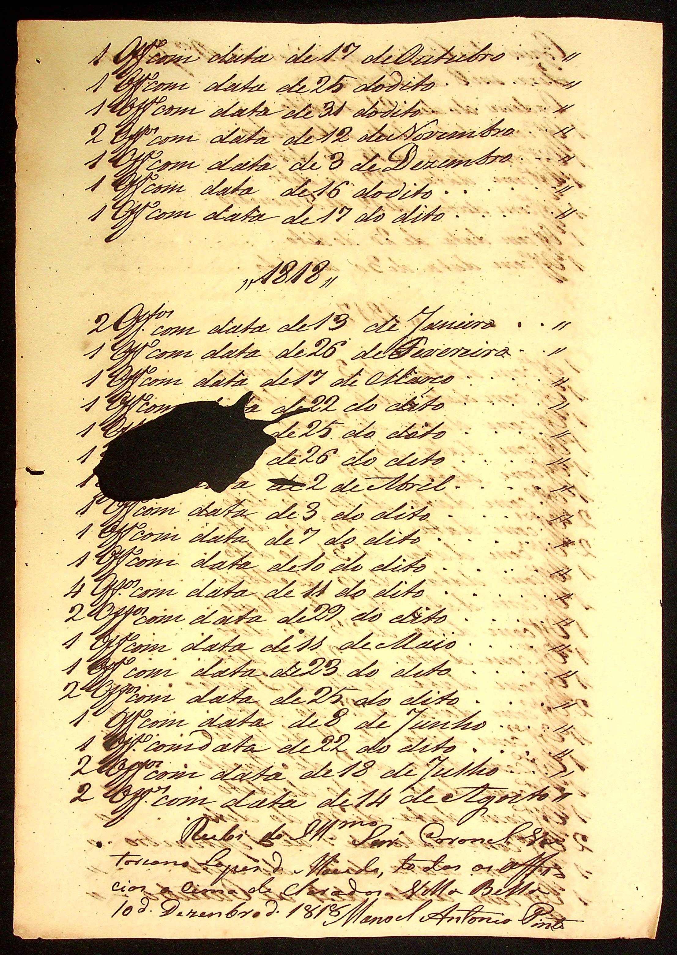 CARTA de Manoel Antônio Pinto ao [Governador e Capitão-General da Capitania de Mato Grosso] João Carlos Augusto d’Oeynhausen e Gravenberg.