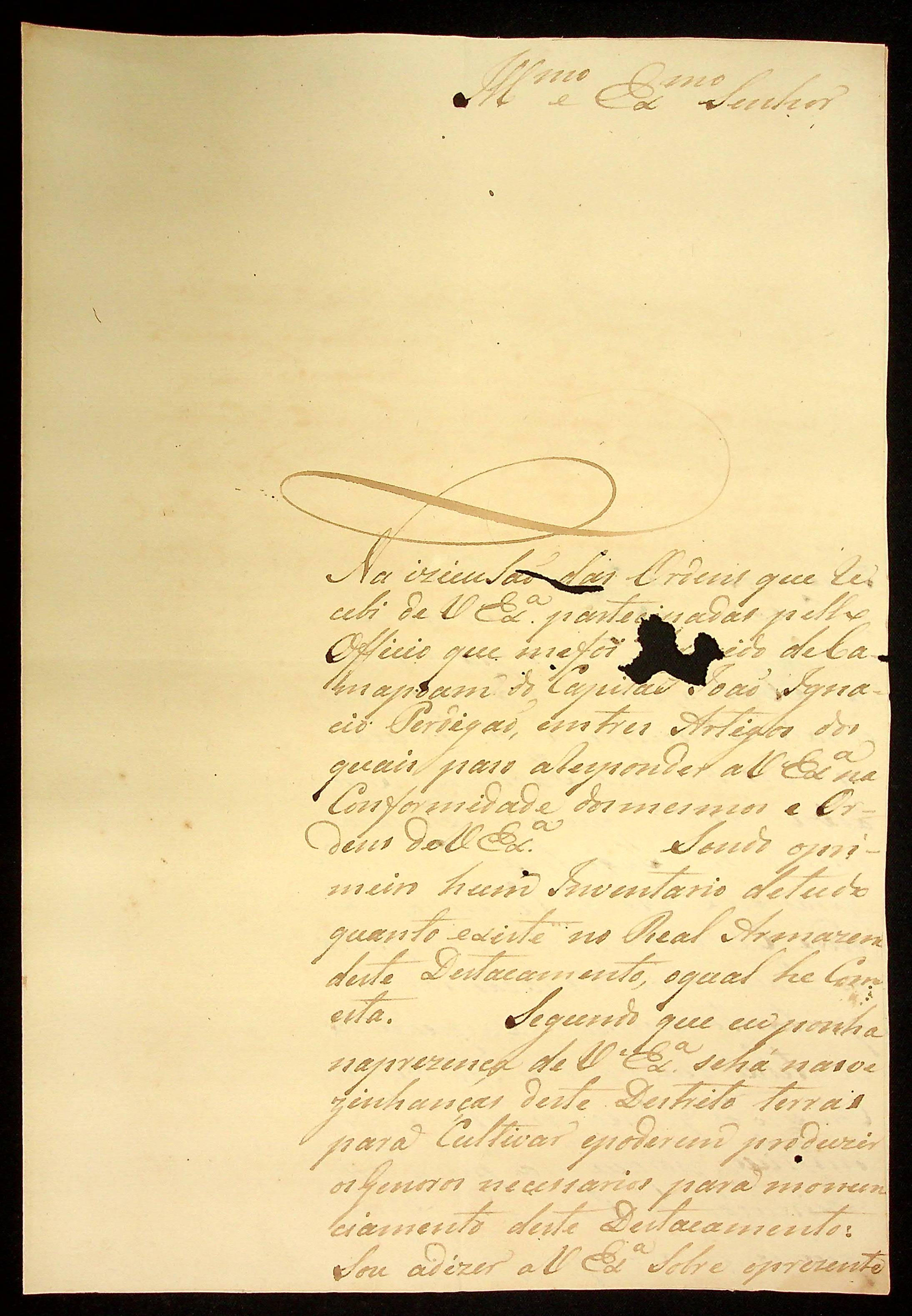 CARTA de Joaquim Antônio Góes ao [Governador e Capitão-General da Capitania de Mato Grosso João Carlos Augusto d’Oeynhausen e Gravenberg].