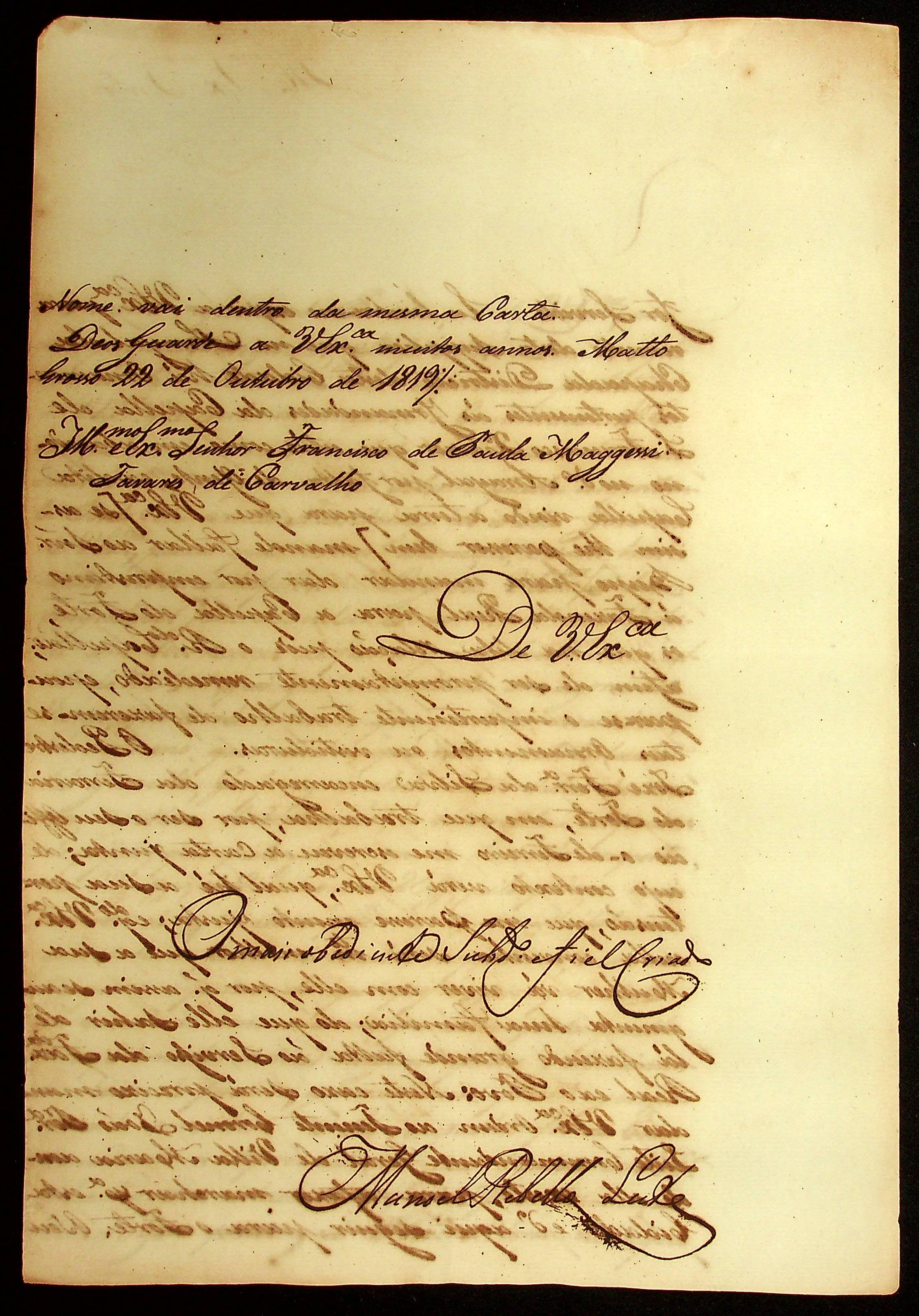 CARTA de Manoel [Rabelo] Leite ao [Governador e Capitão-General da Capitania de Mato Grosso] Francisco de Paula Maggessi Tavares de Carvalho.