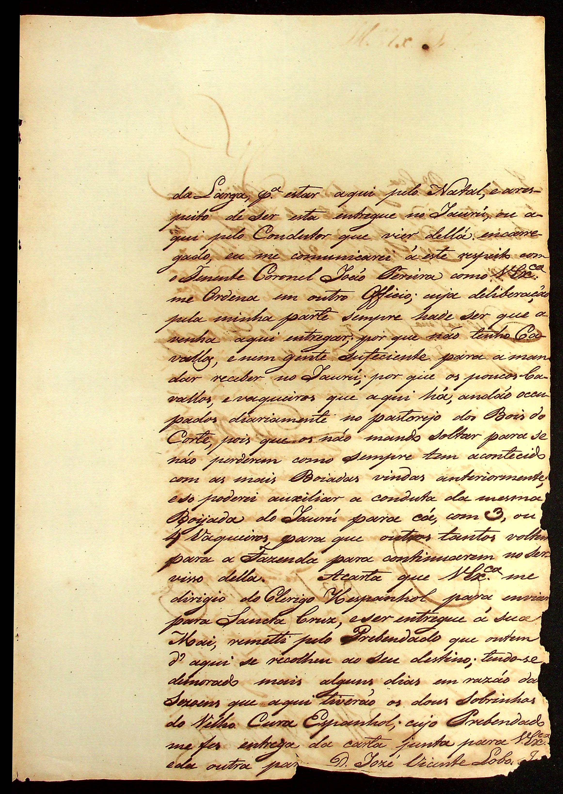 CARTA de Manoel [Rabelo] Leite ao [Governador e Capitão-General da Capitania de Mato Grosso] Francisco de Paula Maggessi Tavares de Carvalho.