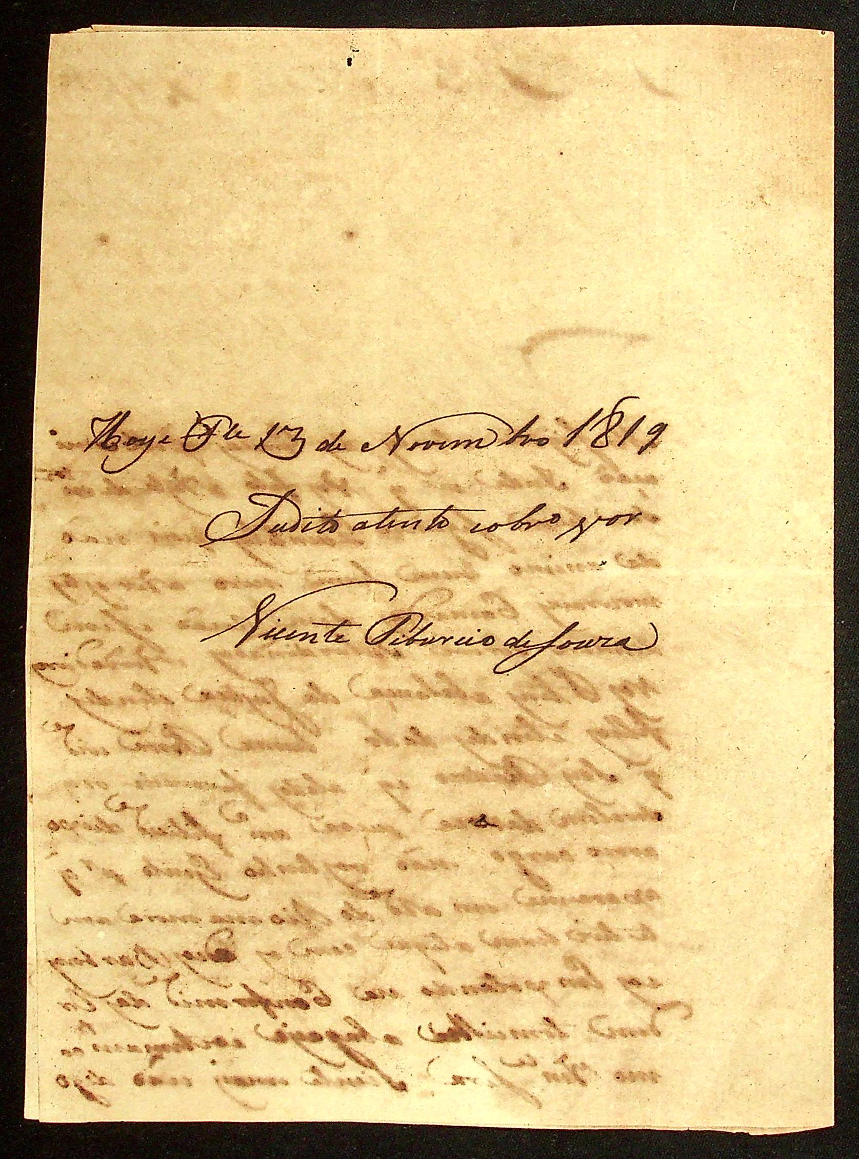 CARTA de Vicente Tibúrcio de Souza ao Tenente-Coronel Manoel Rebelo Leite.
