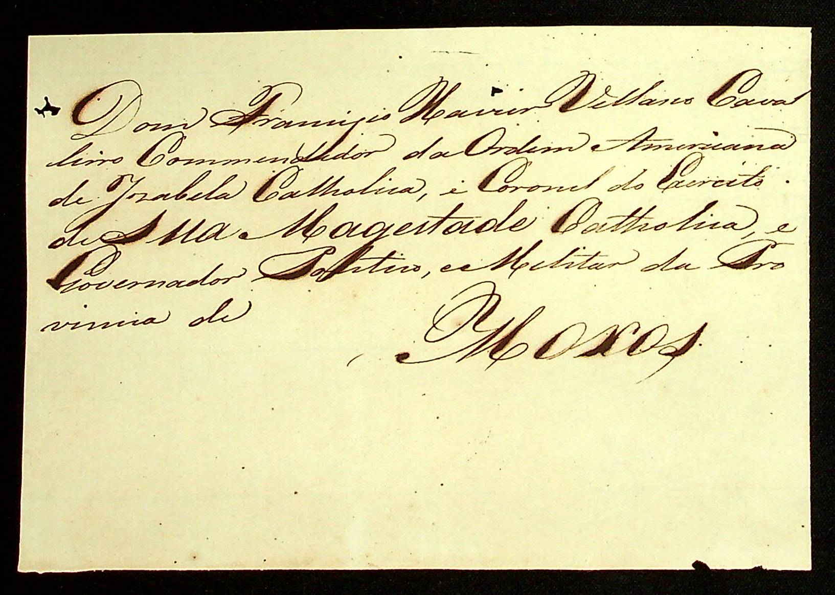 CARTA de Francisco Xavier Velasco ao Comandante de Casalvasco Antônio Pinto da Fonseca.