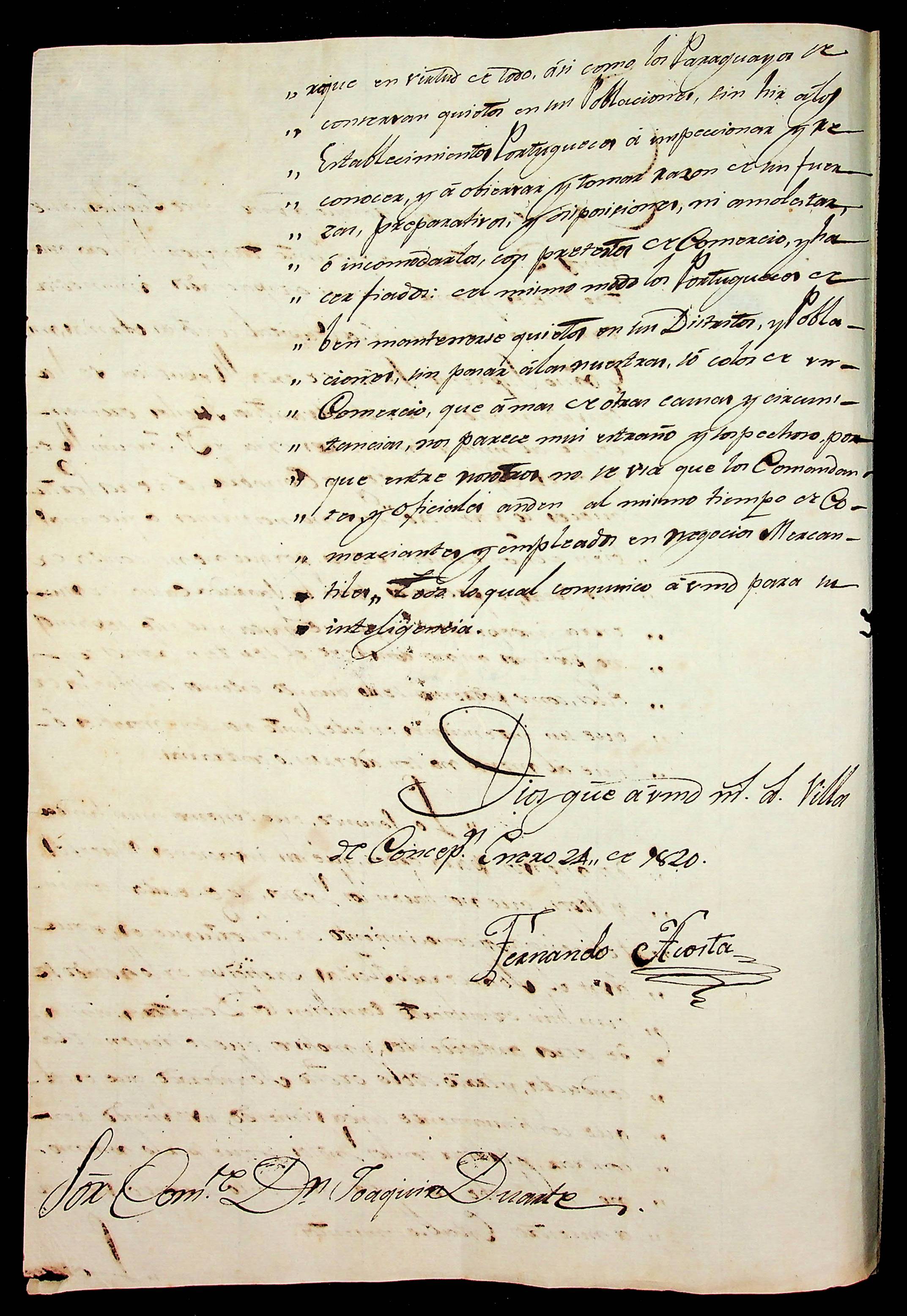 CARTA de Fernando Acosta ao Comandante Joaquim Duarte.