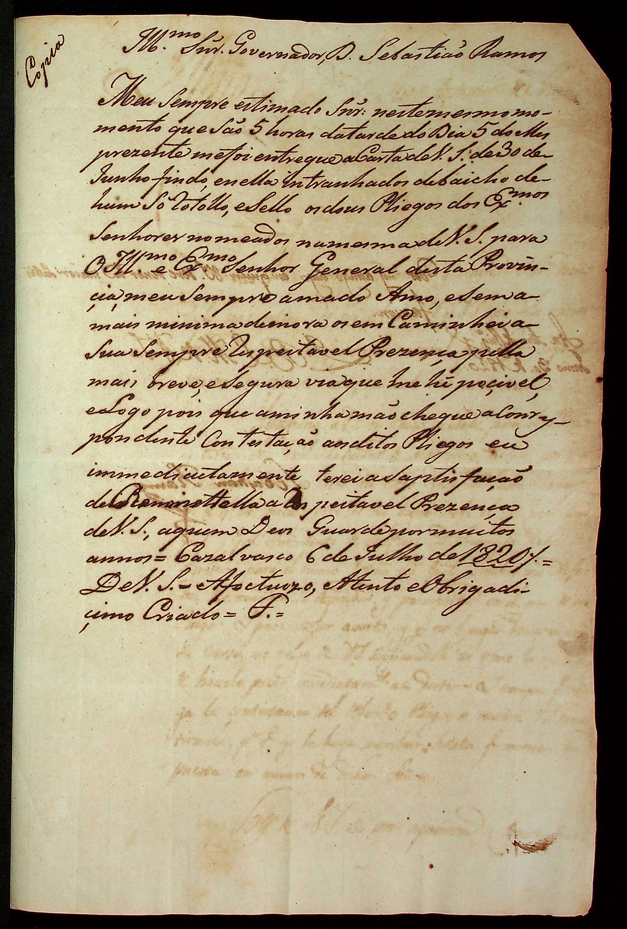 CARTA do [Governador de Chiquitos] Sebastian Ramos ao Comandante de Casalvasco Luiz Antônio de Souza.