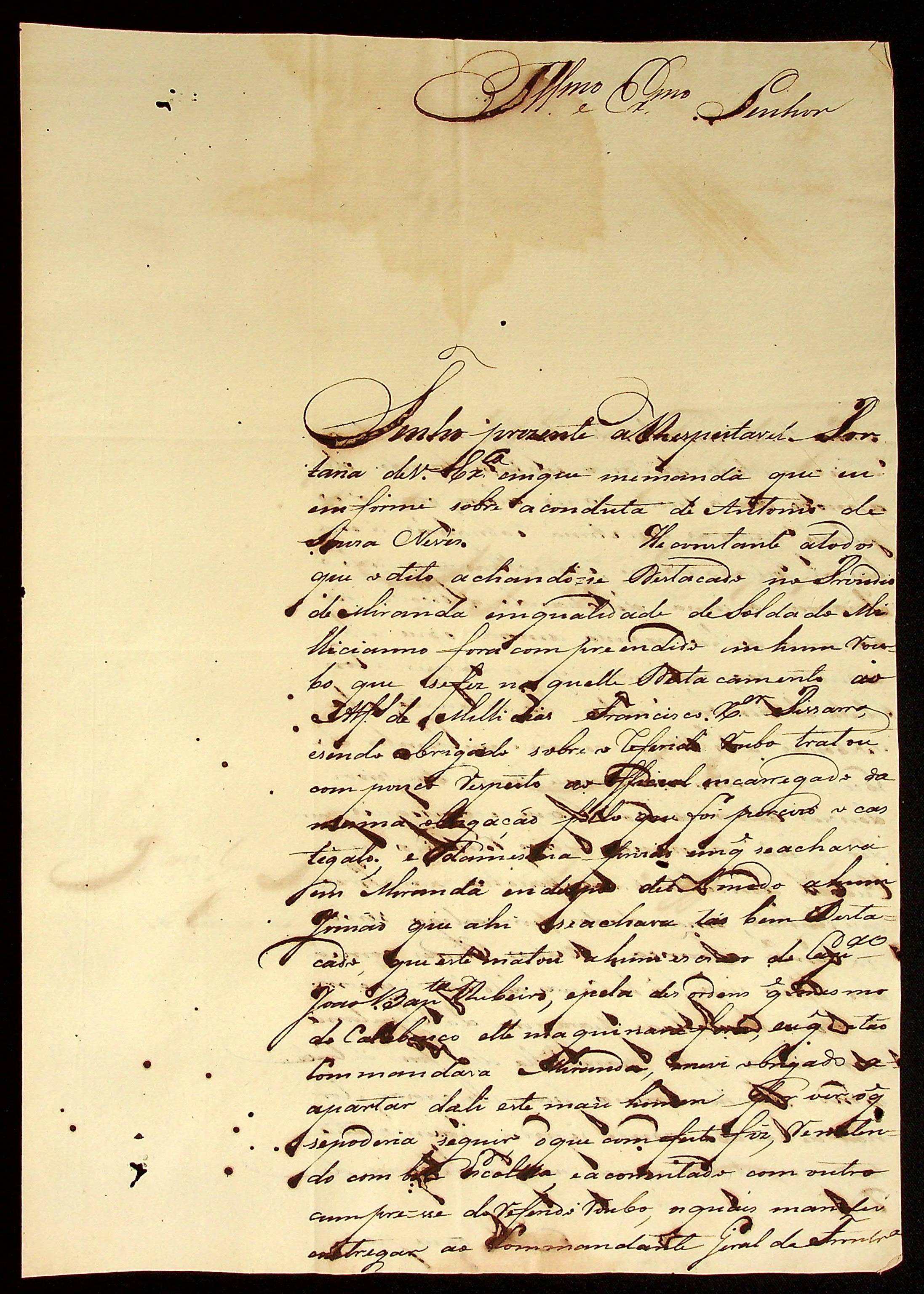 CARTA do Tenente-Coronel Jerônimo Joaquim Nunes ao [Governador e Capitão-General da Capitania de Mato Grosso Francisco de Paula Maggessi Tavares de Carvalho].