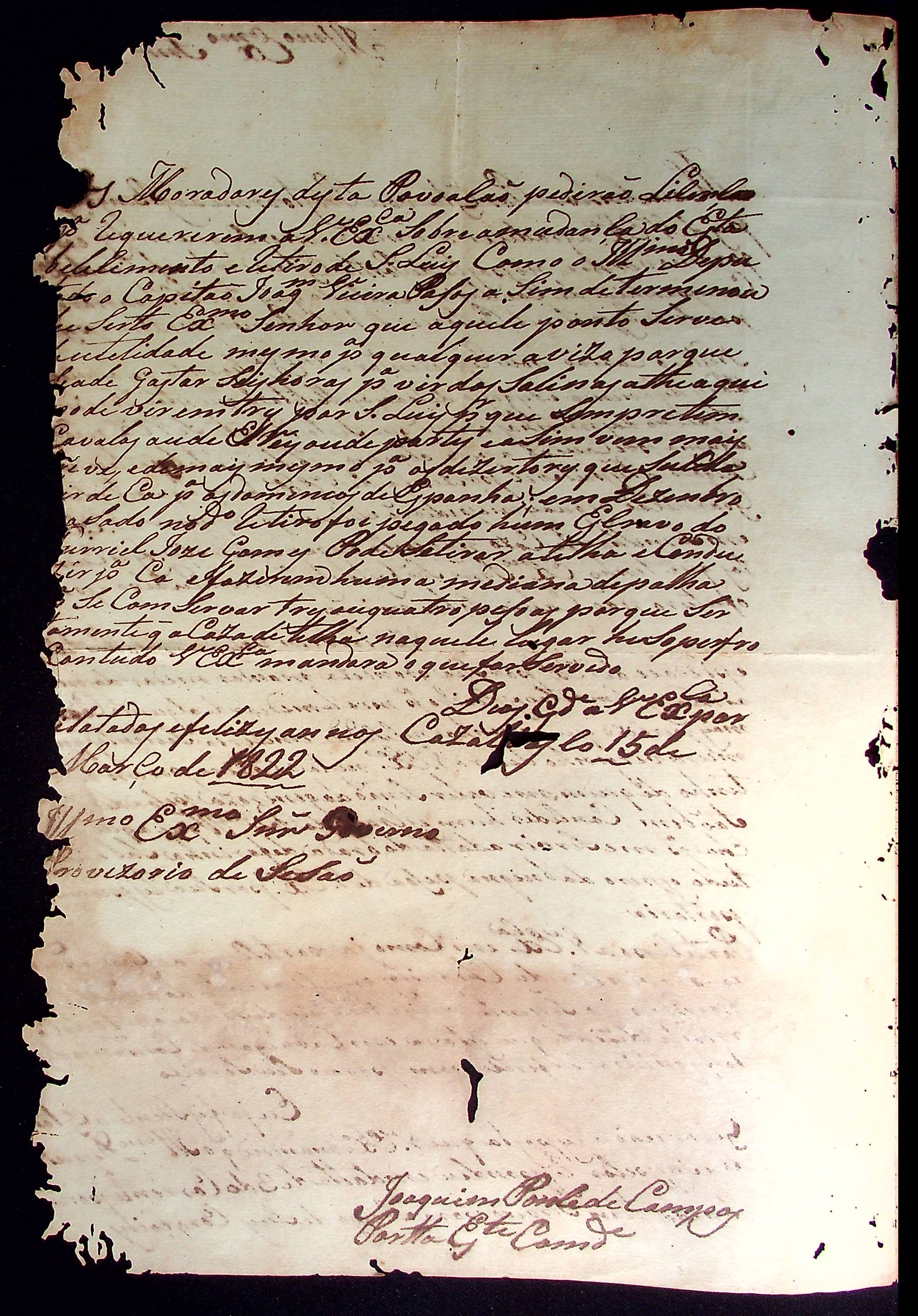 CARTA do Porta-Estandarte Comandante Joaquim [Pontes] de Campos ao Governo Provisório de Sucessão.