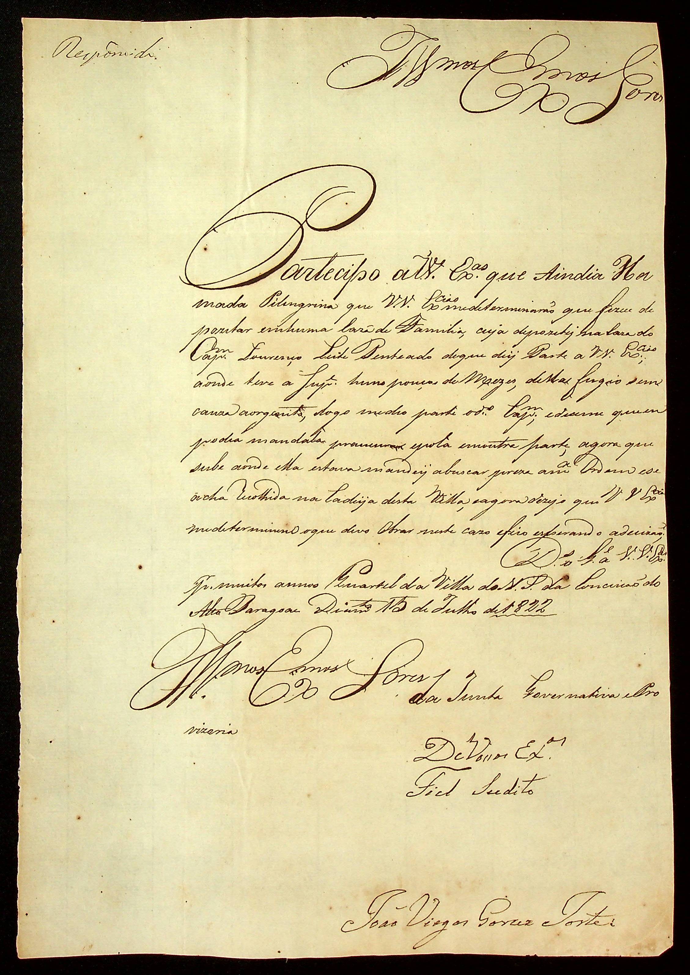 CARTA de João Viegas Garces Forte à Junta Governativa Provisória.