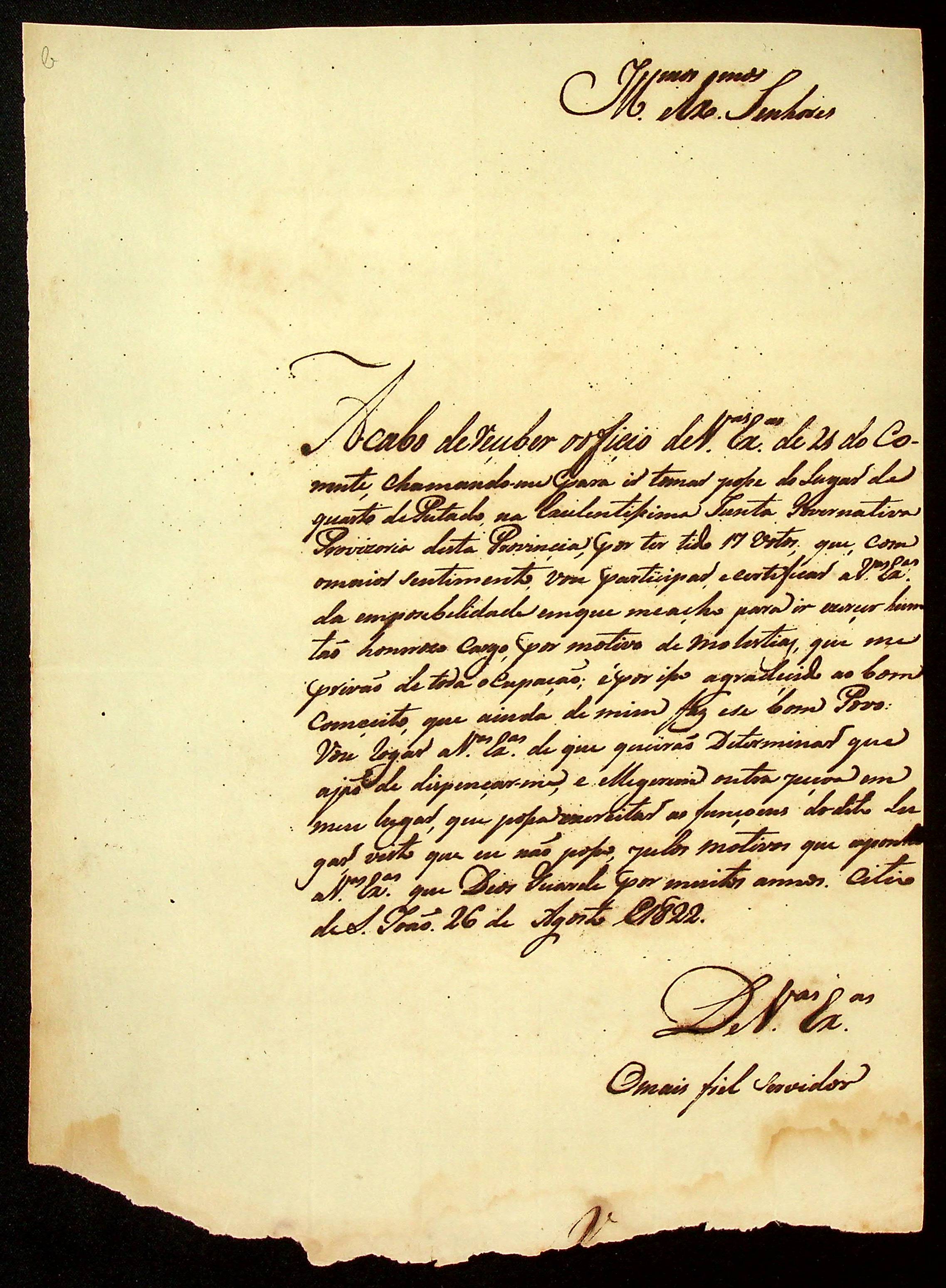 CARTA de [V..?] ao [Junta Governativa Provisória da Província].