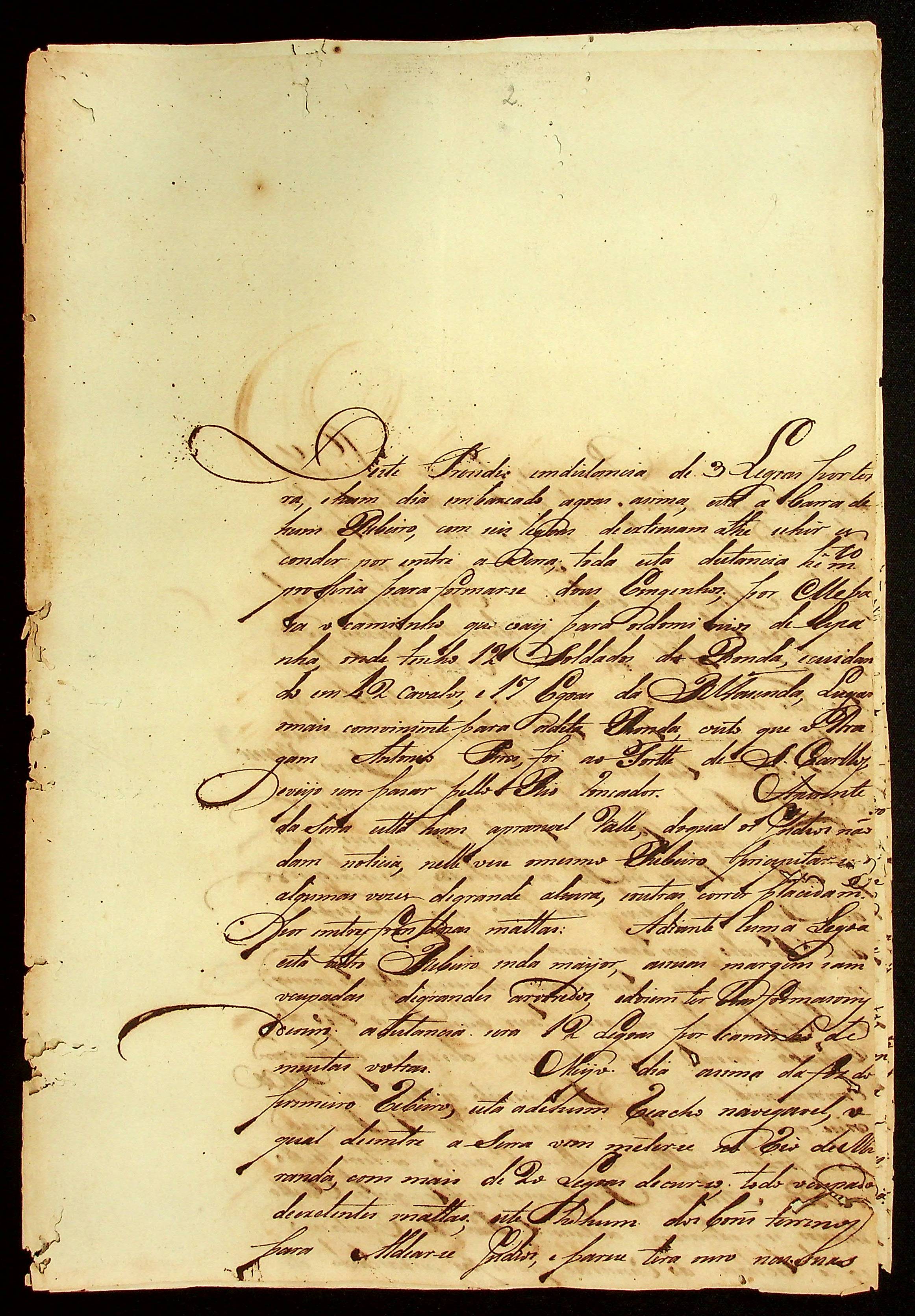 CARTA (incompleta) informando que há certa distância do presídio existe um espaço para formar-se dois engenhos e que fica perto dos caminhos que vão para os domínios hispânicos.