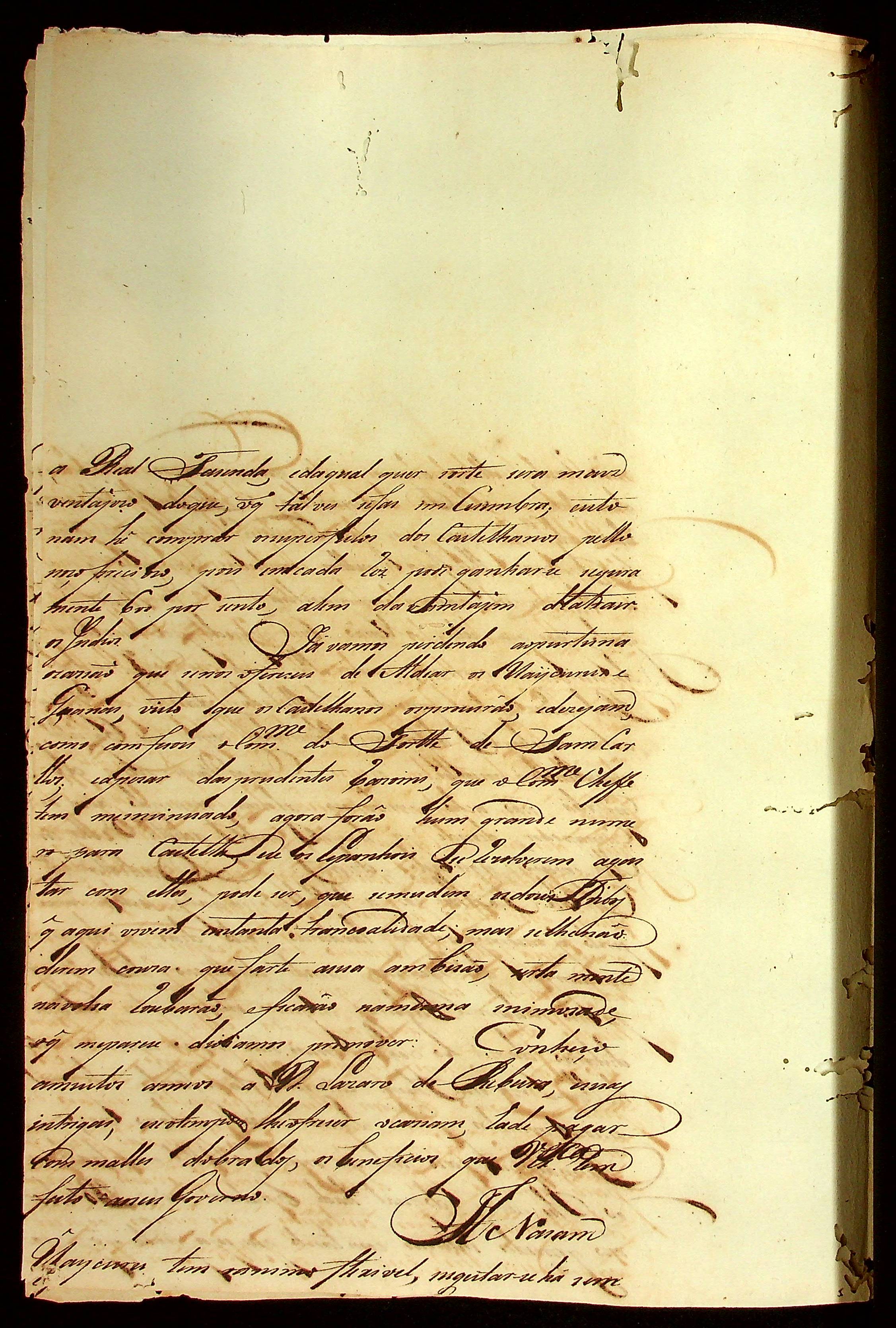 CARTA (incompleta) informando que há certa distância do presídio existe um espaço para formar-se dois engenhos e que fica perto dos caminhos que vão para os domínios hispânicos.