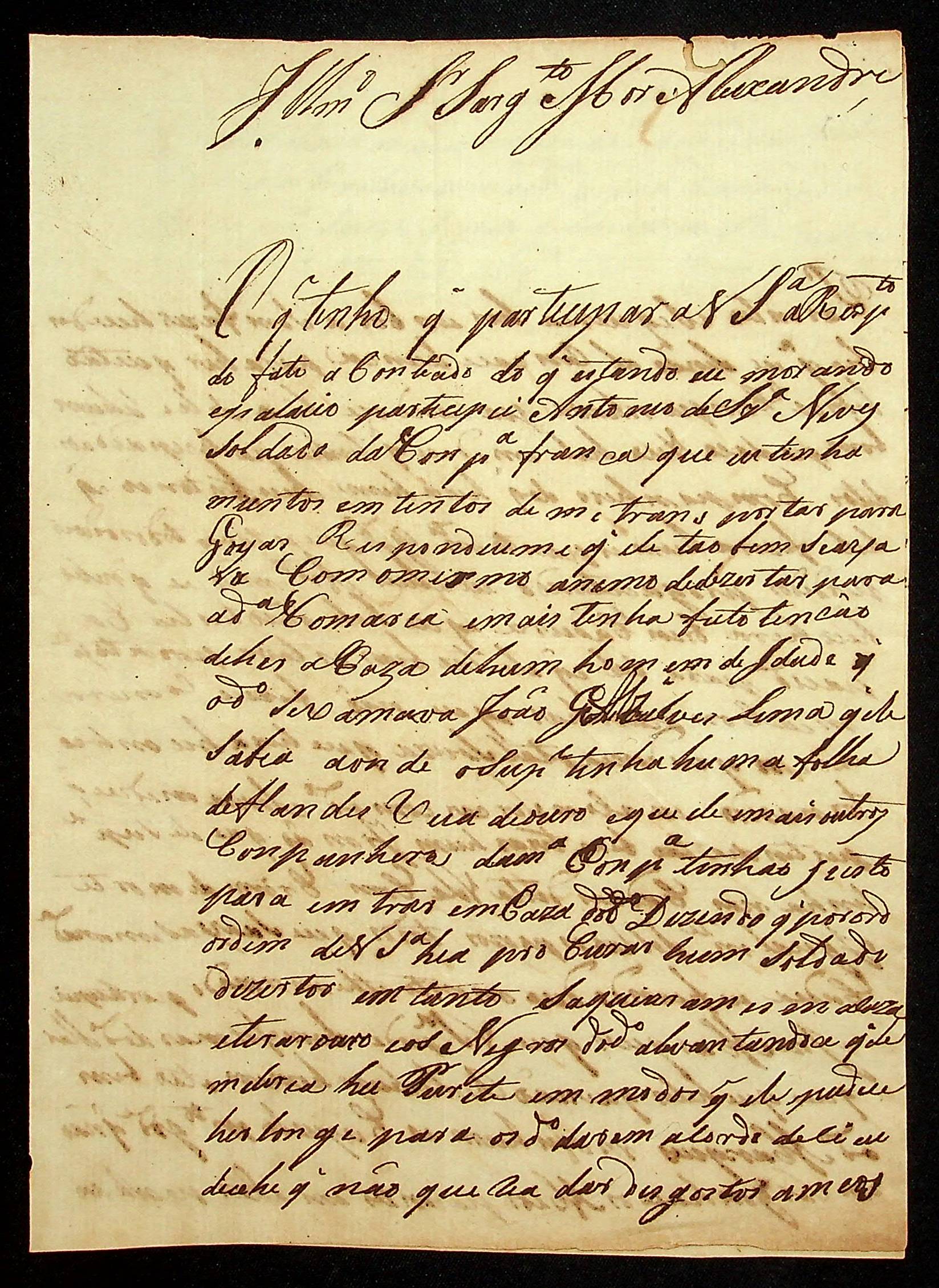 CARTA enviada ao Sargento-mor Alexandre José Leite Xavier Mello relatando alguns acontecimentos de certos militares.