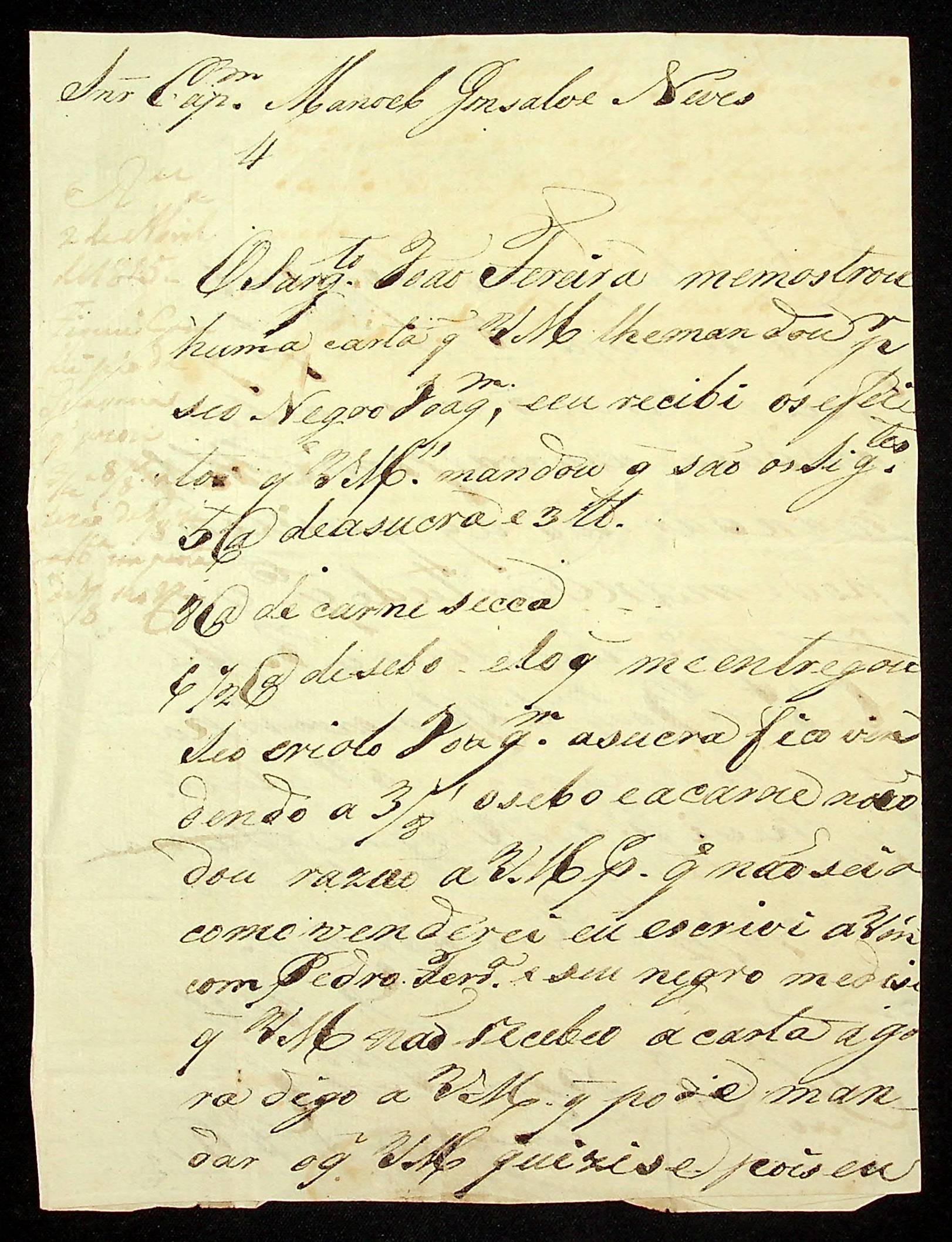 CARTA de João Francisco […] ao Capitão Manoel Gonçalves Neves.