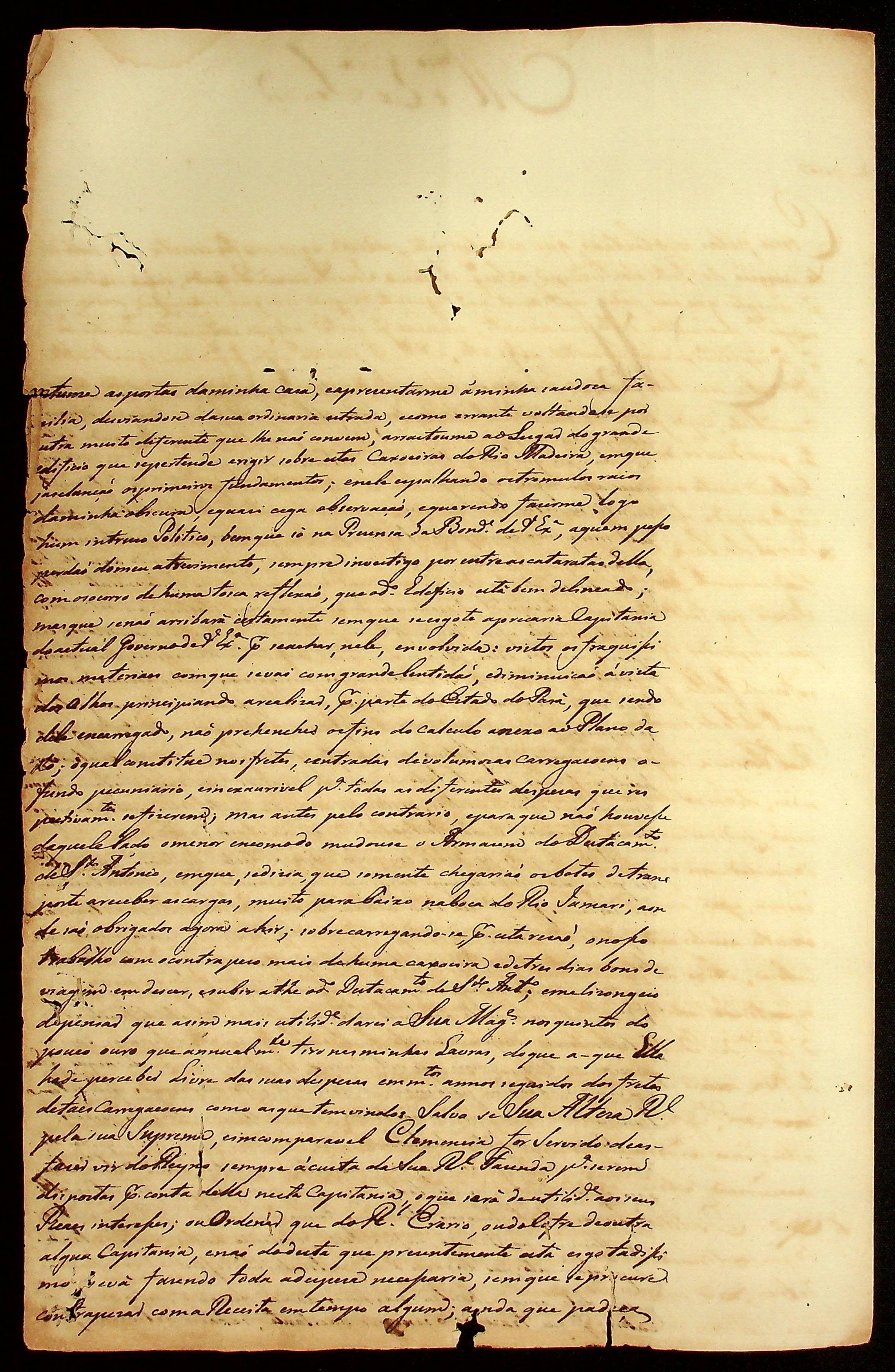 CARTA (incompleta) dando Notícias do Destacamento da Povoação de Jamari.