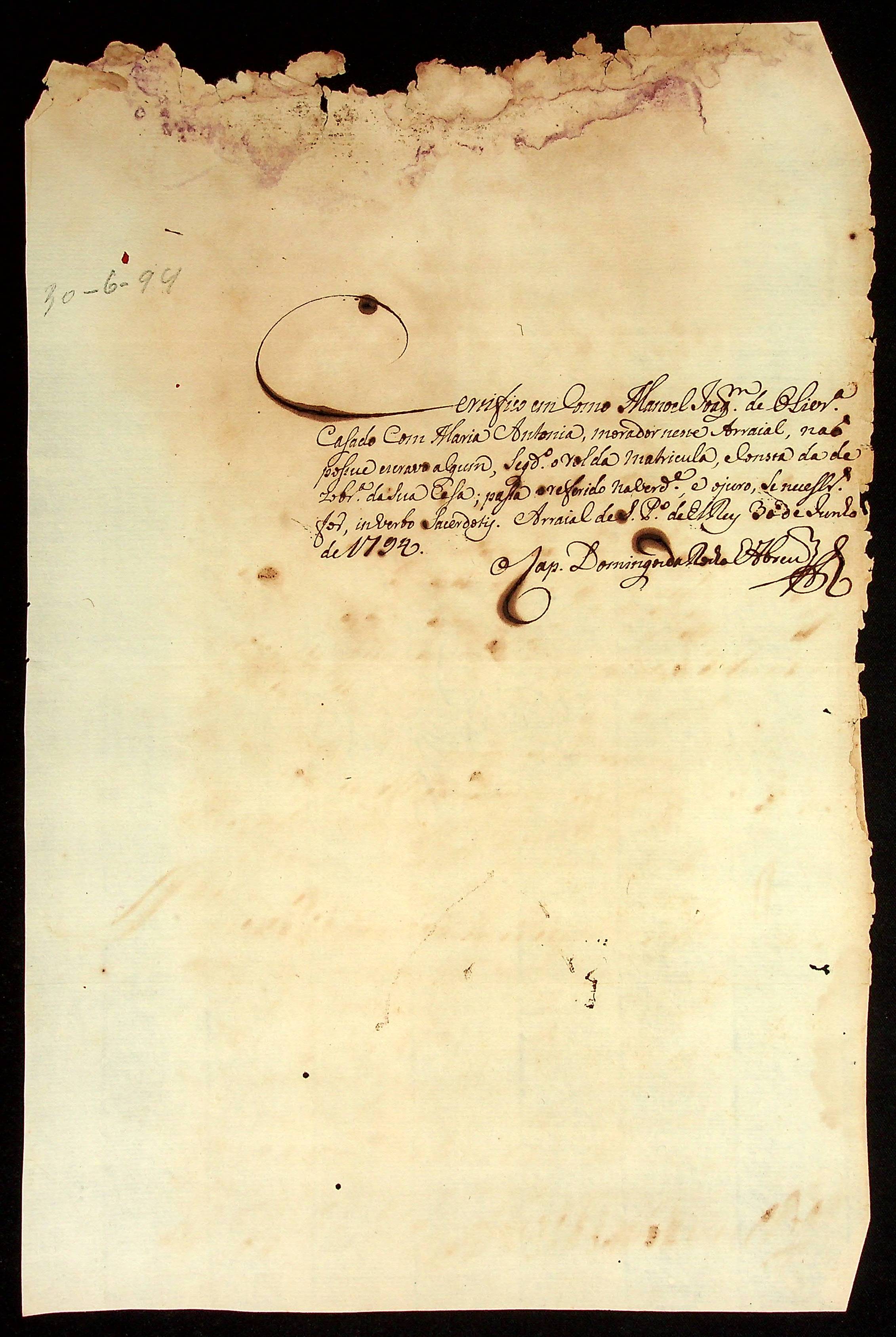CERTIDÃO expedido pelo Capitão Domingos da Rocha Abreu.