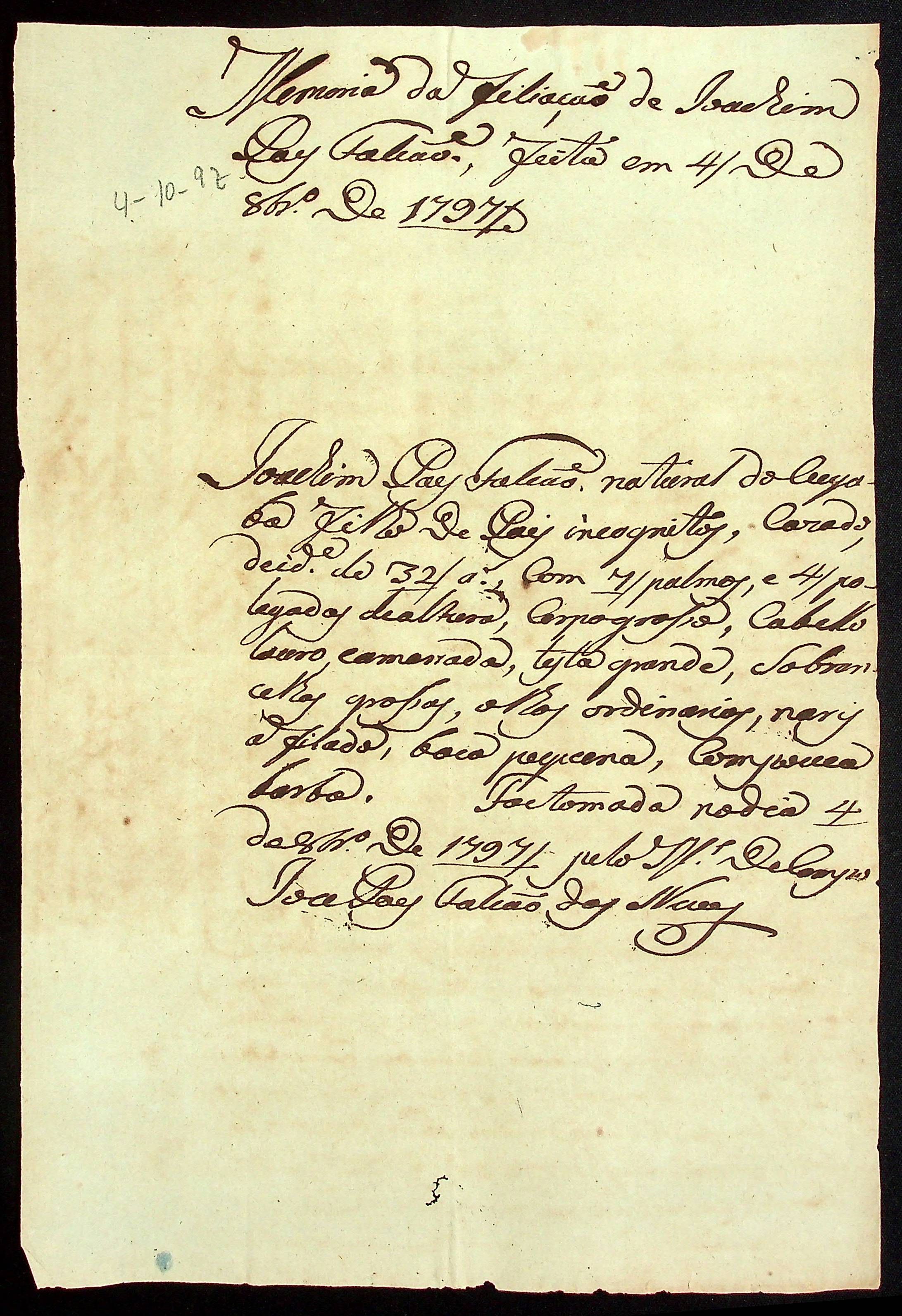 DECLARAÇÃO dos atributos físicos de Joaquim Paes Falcão.