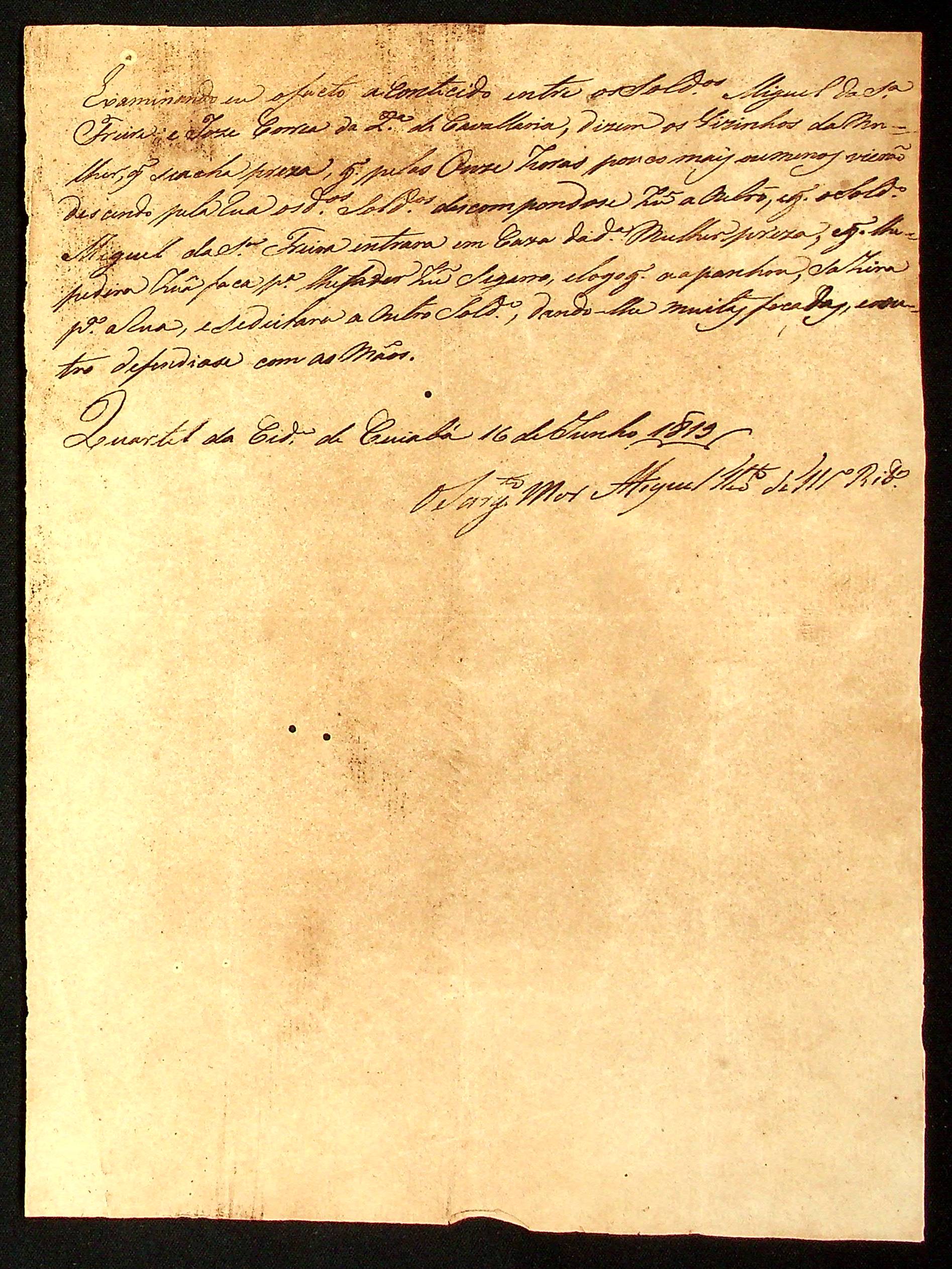 DECLARAÇÃO do Sargento-mor Miguel [Pinto] de […] Ribeiro.