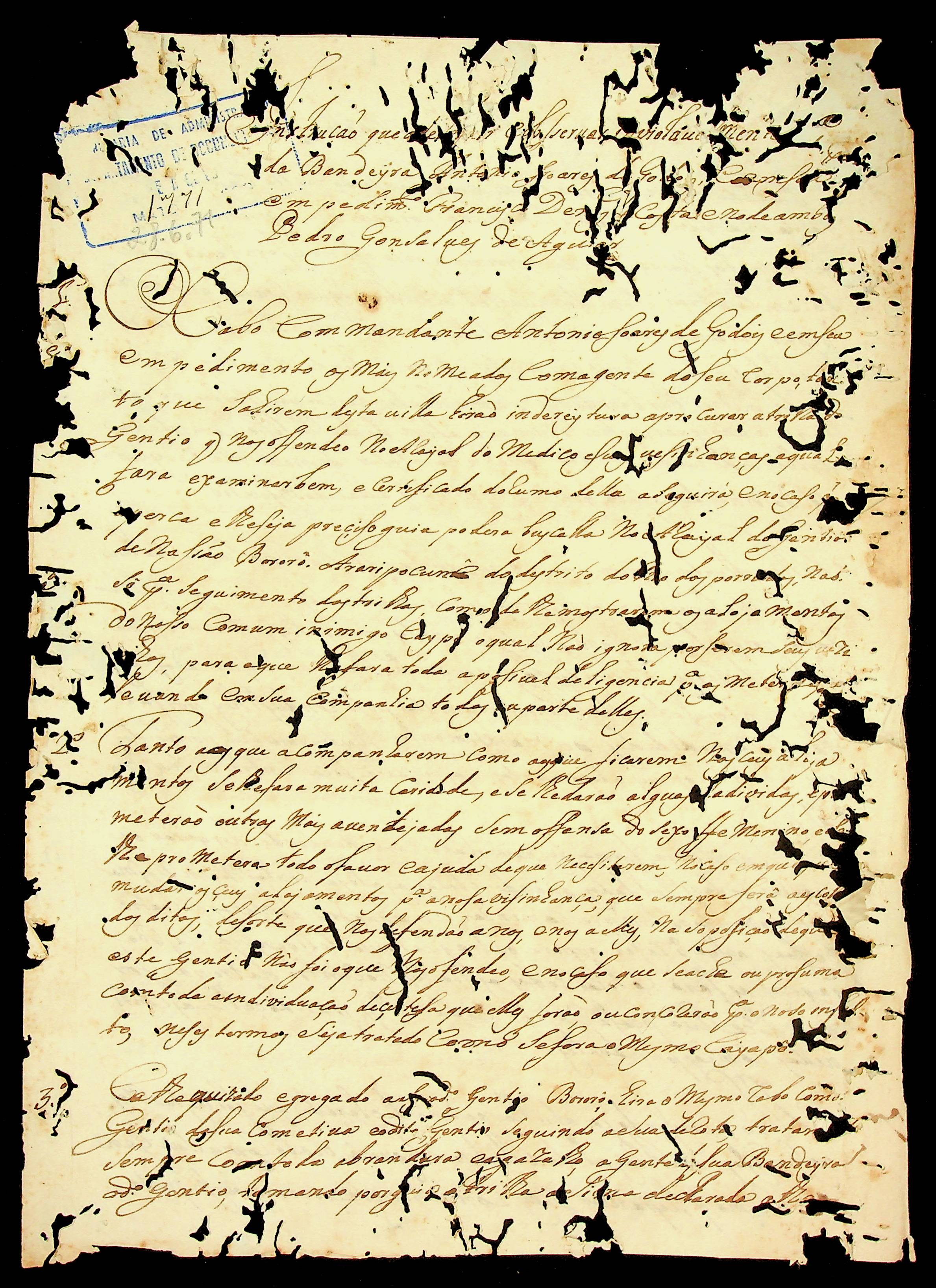 INSTRUÇÃO do Mestre de Campo e Comandante Antônio Soares de Godoy e Comandante Francisco Lopes de Araújo.