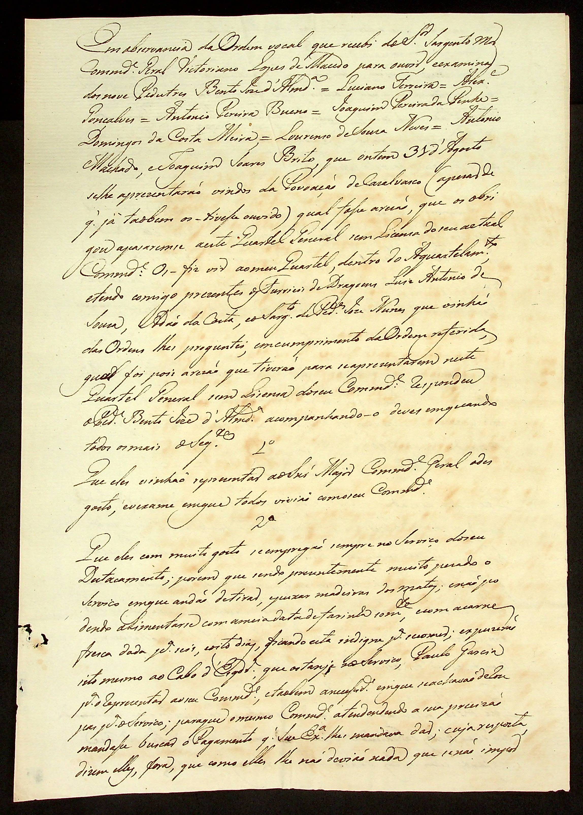 INQUIRIÇÃO feita pelo Chefe Comandante Manoel [Rabelo] Leite aos Soldados do Quartel General.