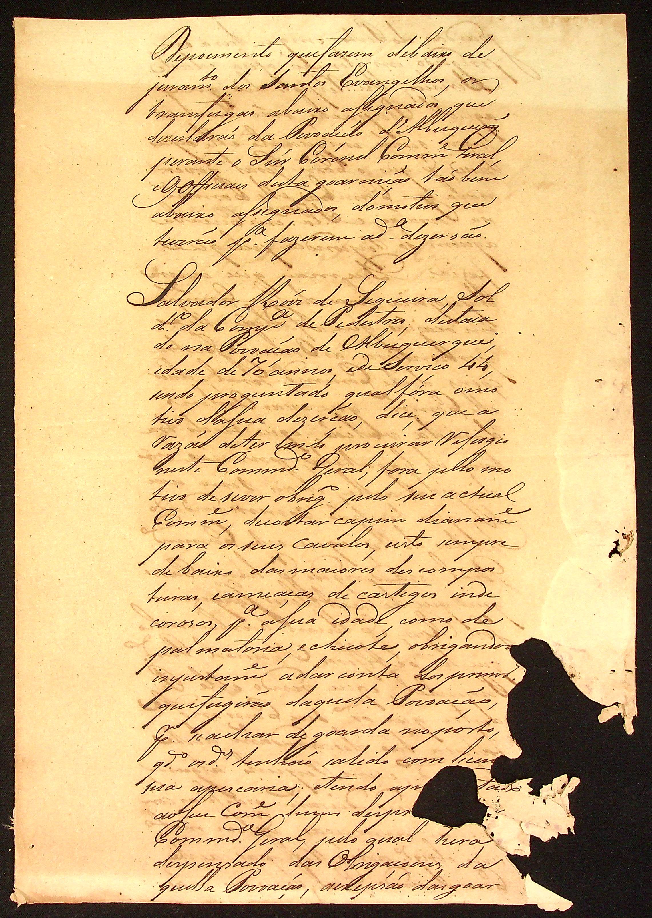 INQUIRIÇÃO feita pelo Coronel Comandante Geral da Povoação de Albuquerque.