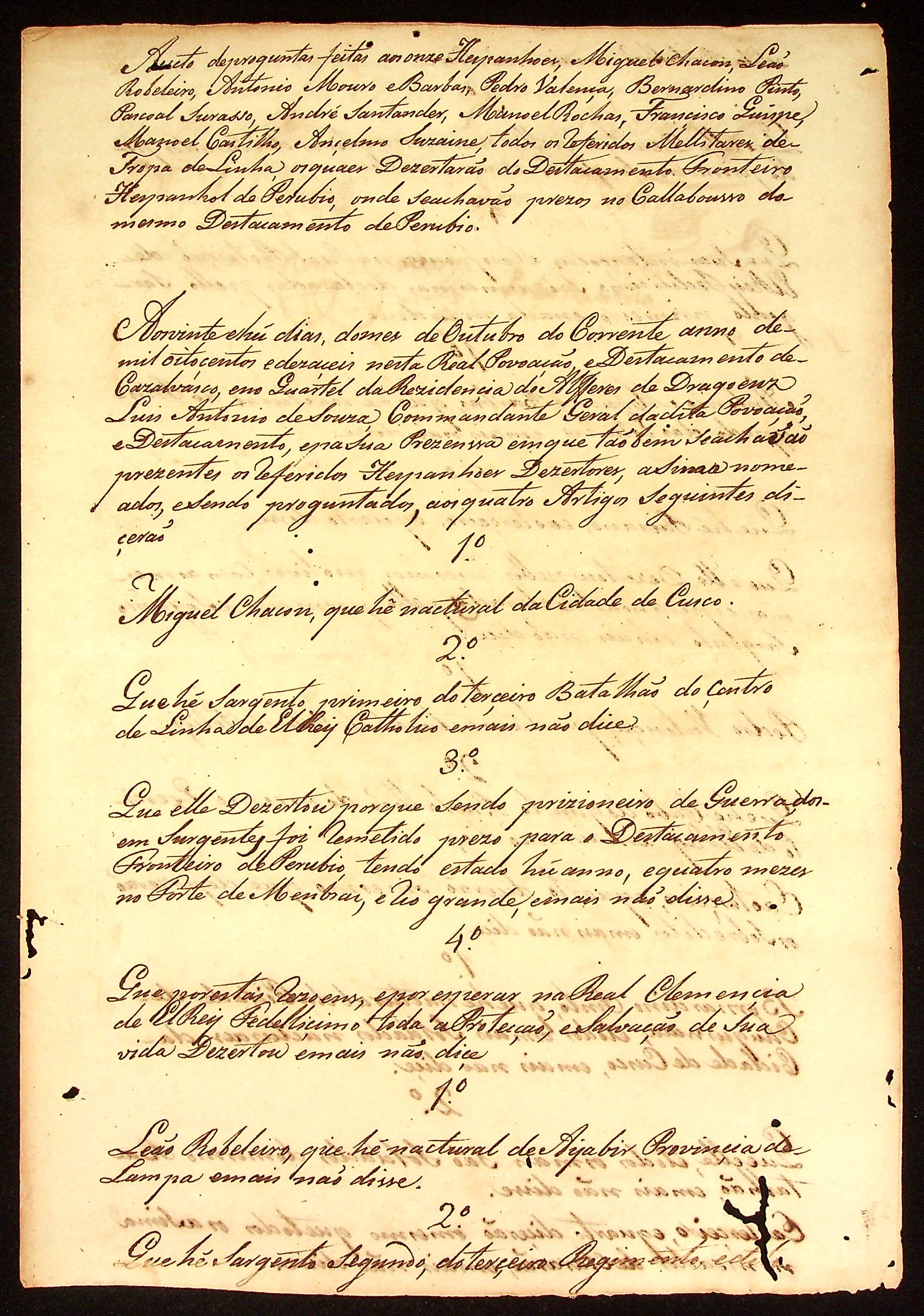 INQUIRIÇÃO feita pelo Comandante de Casalvasco Luiz Antônio de Souza aos presos espanhóis desertores.