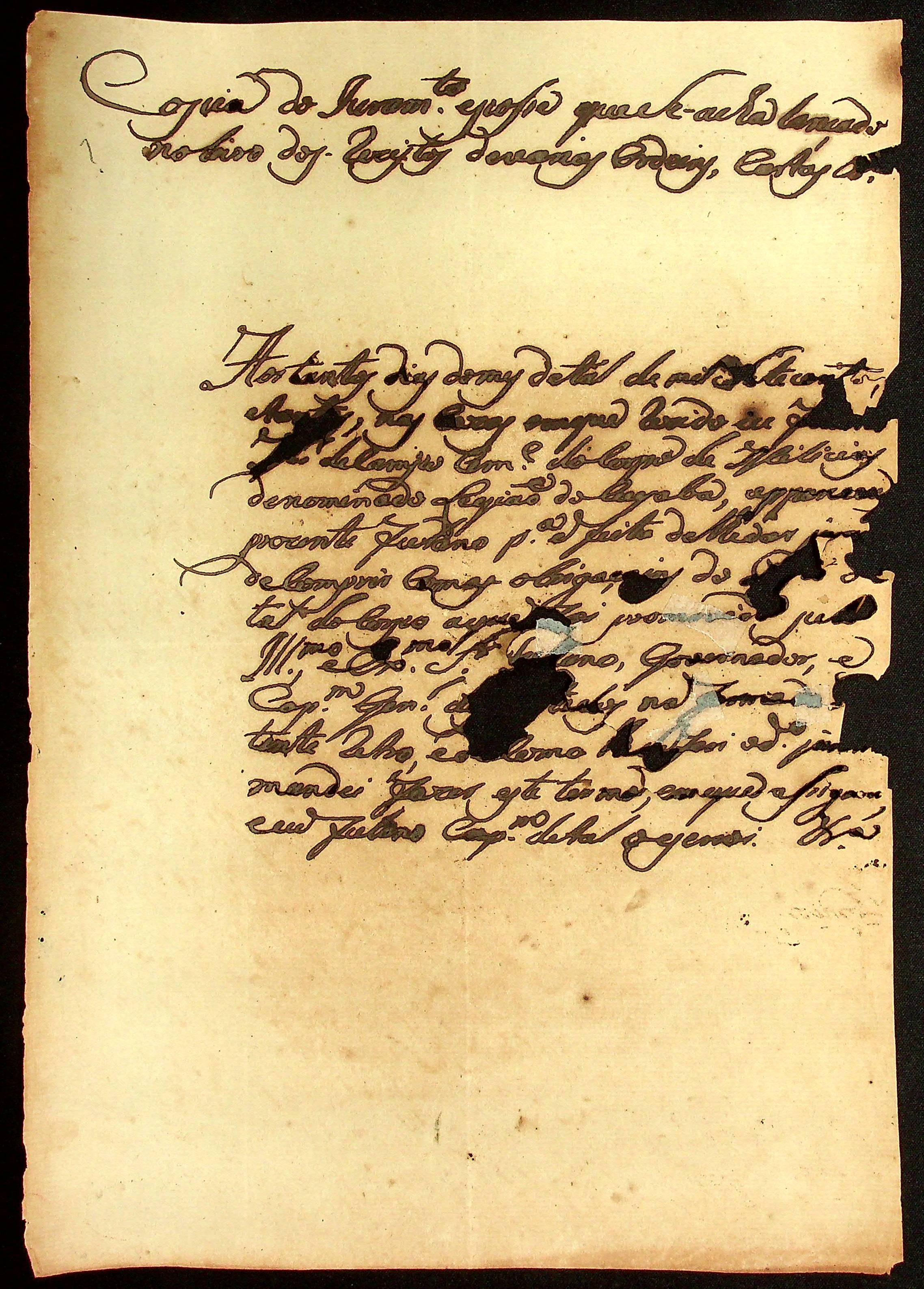 JURAMENTO (cópia) e posse se acha lançado no livro das receitas de várias ordens e cartas.
