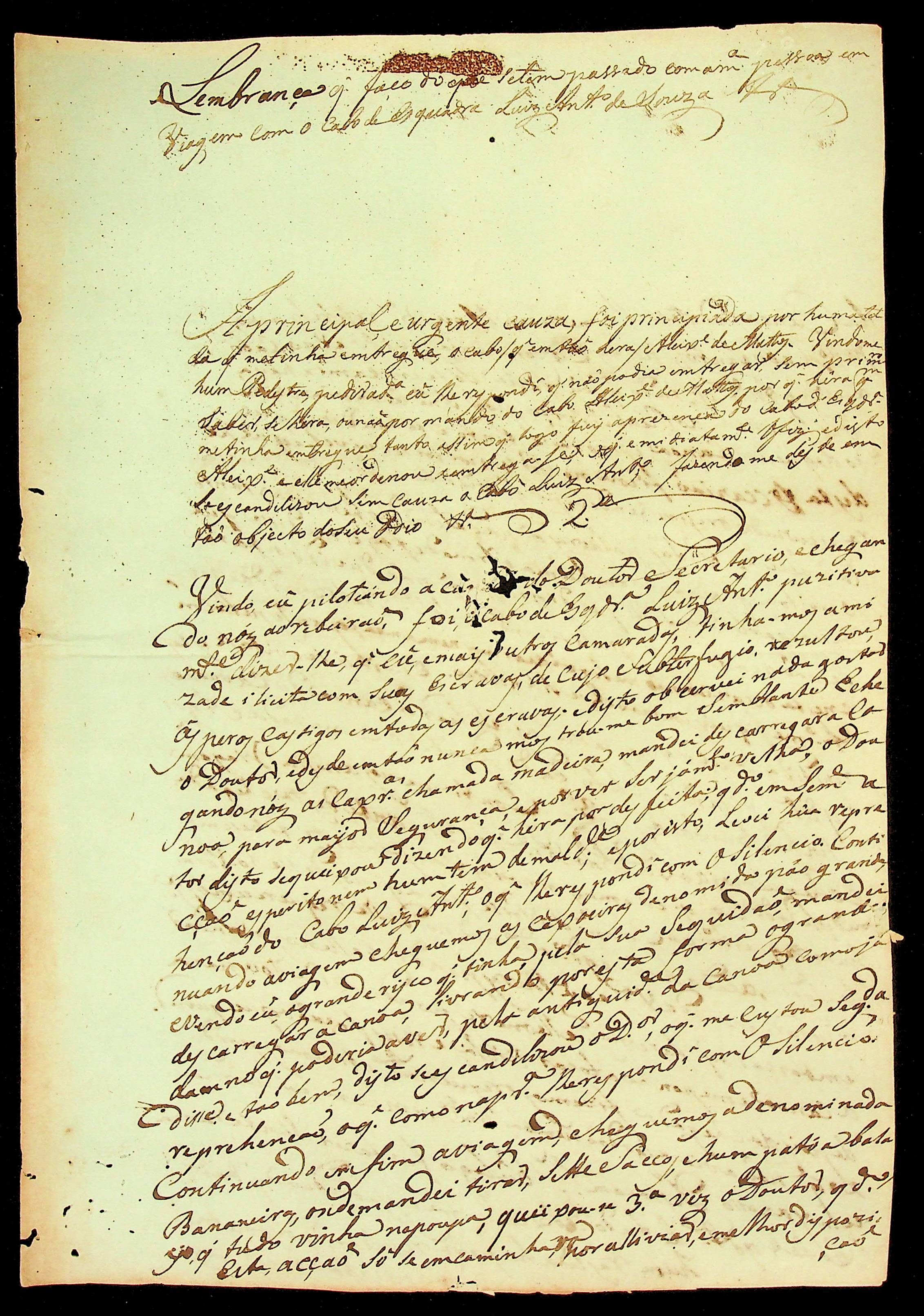 MEMORIAL (incompleto) feito do que tem passado com a minha pessoa em viagem com o Cabo de Esquadra Luiz Antônio de Souza.