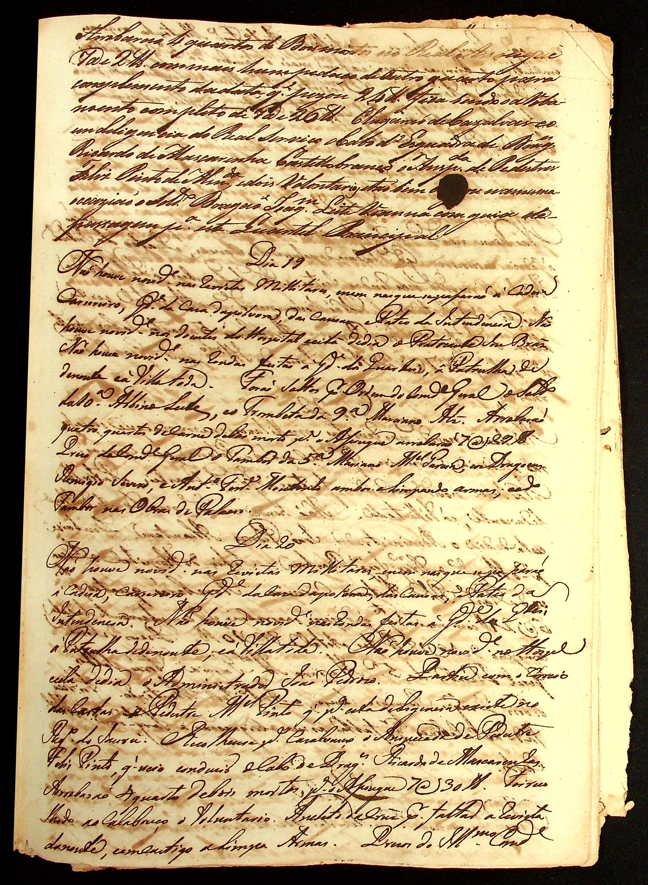 MEMORIAL da participação das novidades do Quartel Militar de Vila Bela dos meses de Novembro a Dezembro, assinado pelo Comandante Manoel Rebelo Leite.