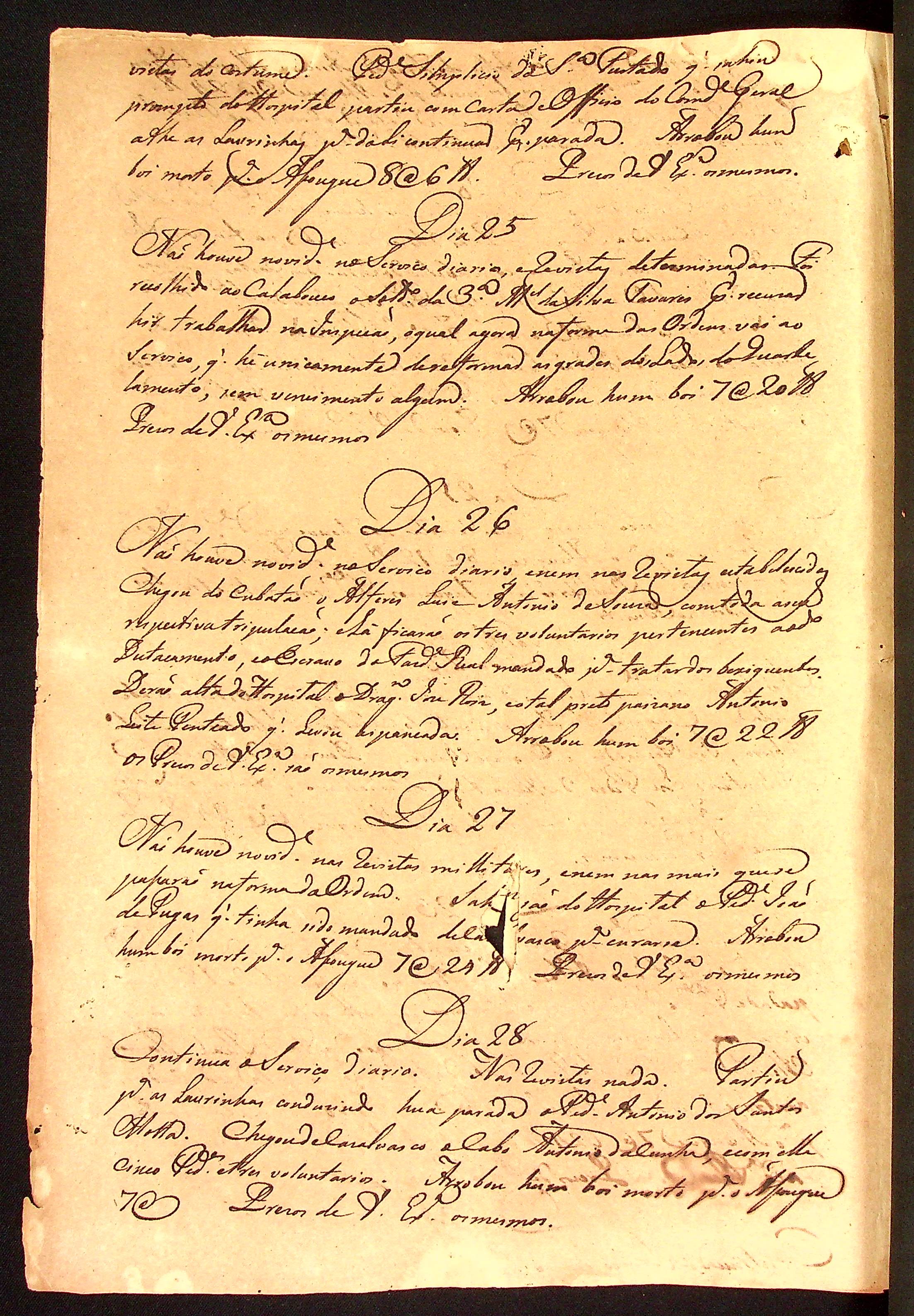 MEMÓRIA das novidades do Quartel Militar desta Capital de Vila Bela acontecidas em cada um dos dias do corrente mês de novembro assinado pelo Sargento-mor e comandante Manuel Rebelo Leite.