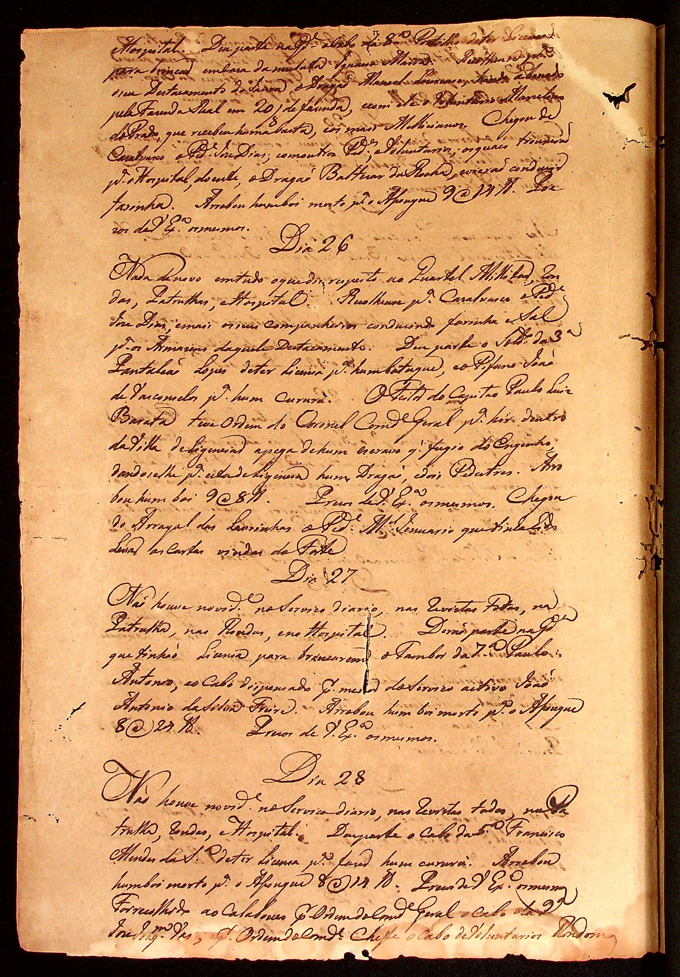MEMÓRIA das novidades do Quartel Militar desta Capital de Vila Bela acontecidas em cada um dia do corrente mês de dezembro Sargento-mor e comandante Manuel Rebelo Leite.