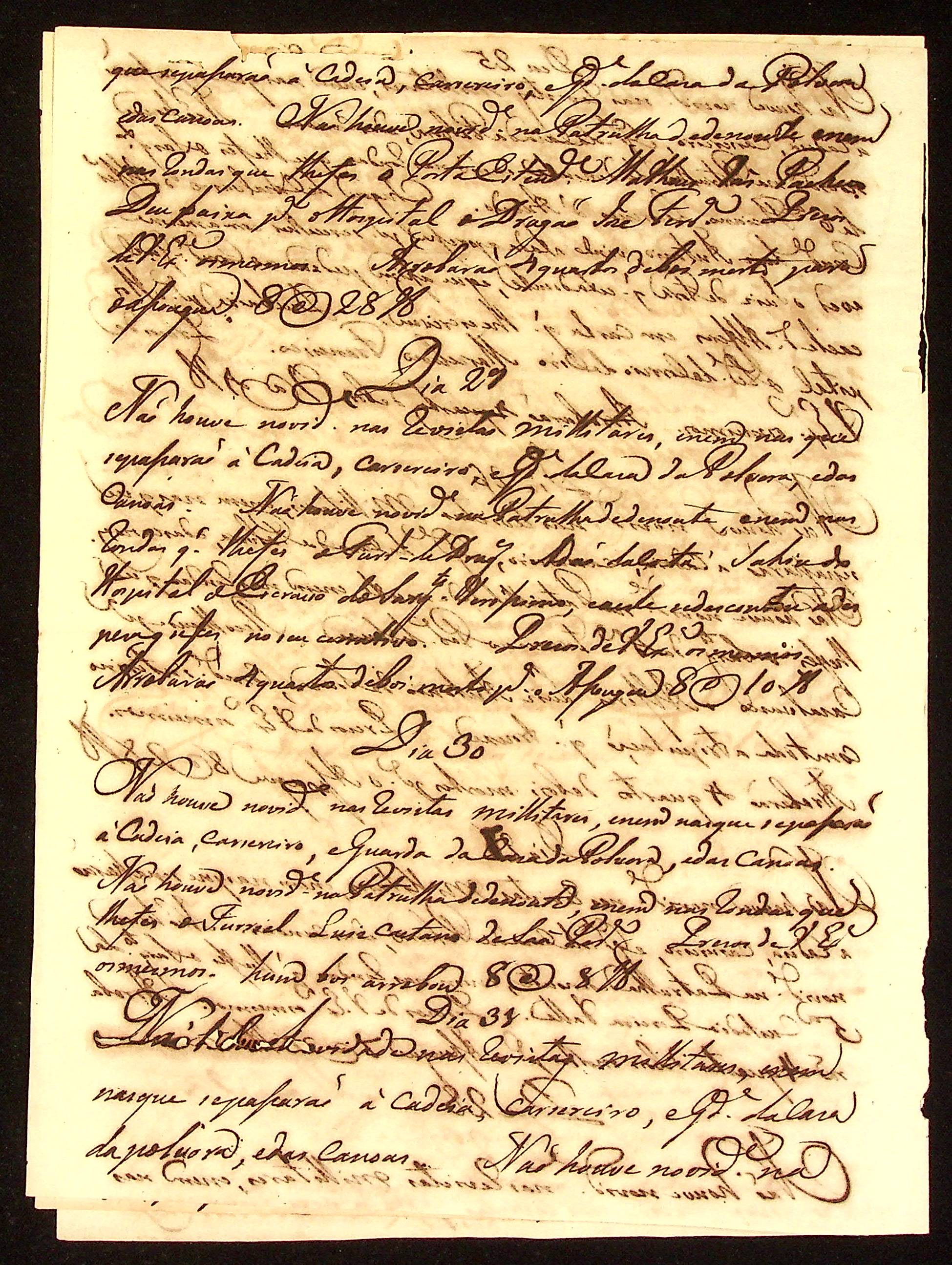 MEMÓRIA das novidades acontecidas diariamente no Quartel Militar de Vila Bela assinadas pelo Comandante Manoel Rebelo Leite.