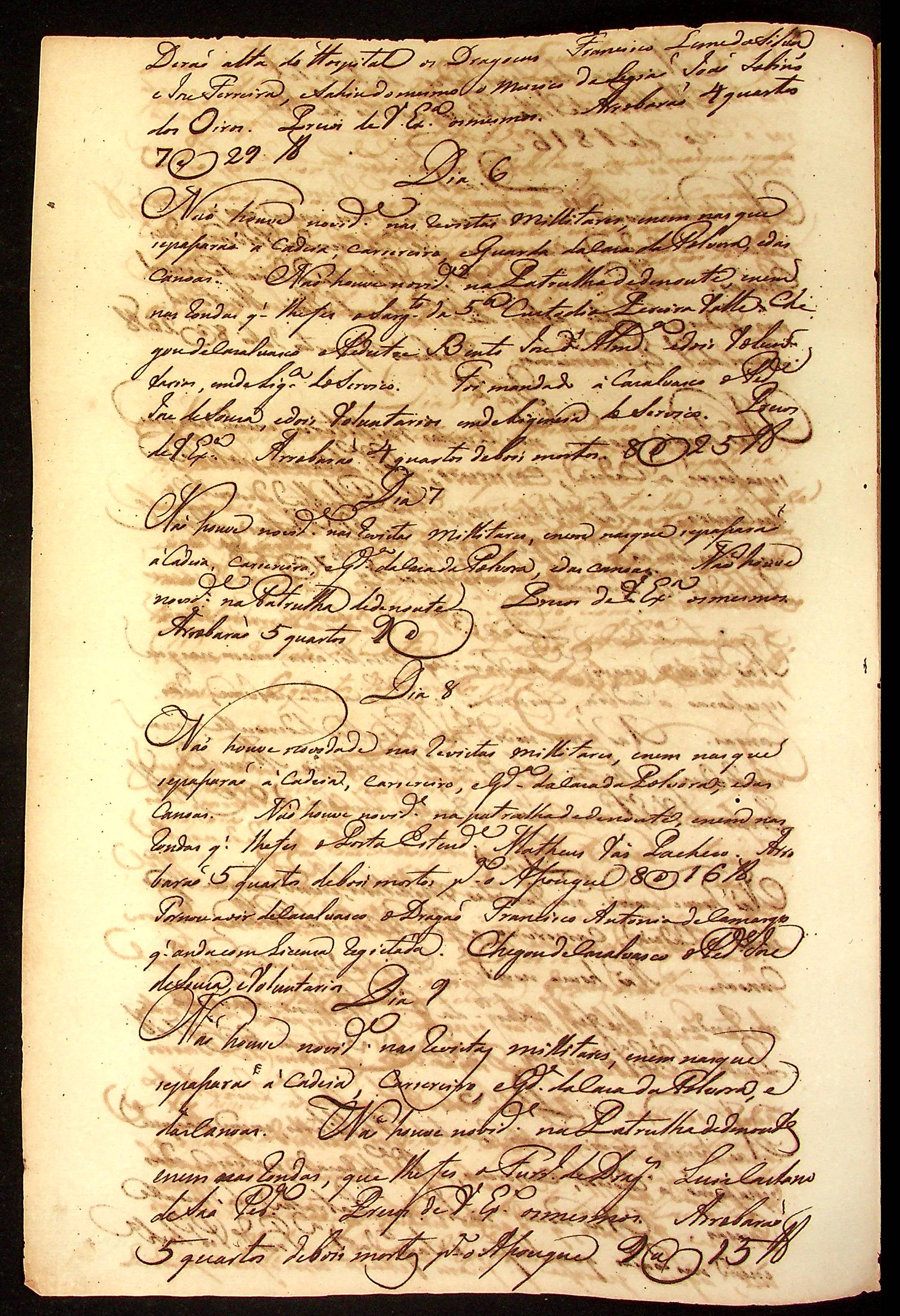 MEMÓRIA das novidades acontecidas diariamente no Quartel Militar de Vila Bela assinadas pelo Comandante Manoel Rebelo Leite.