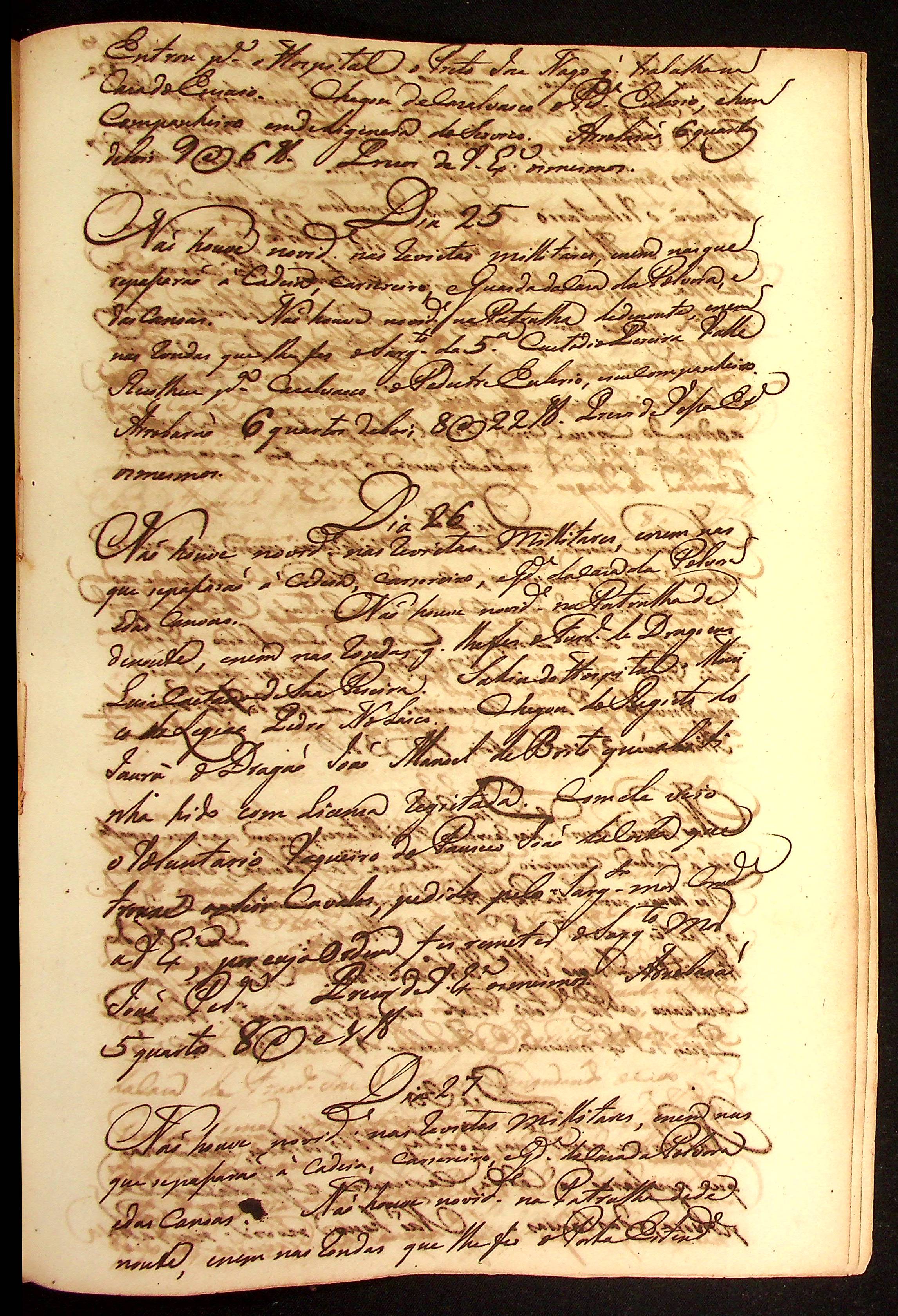MEMÓRIA das novidades acontecidas diariamente no Quartel Militar de Vila Bela assinadas pelo Comandante Manoel Rebelo Leite.