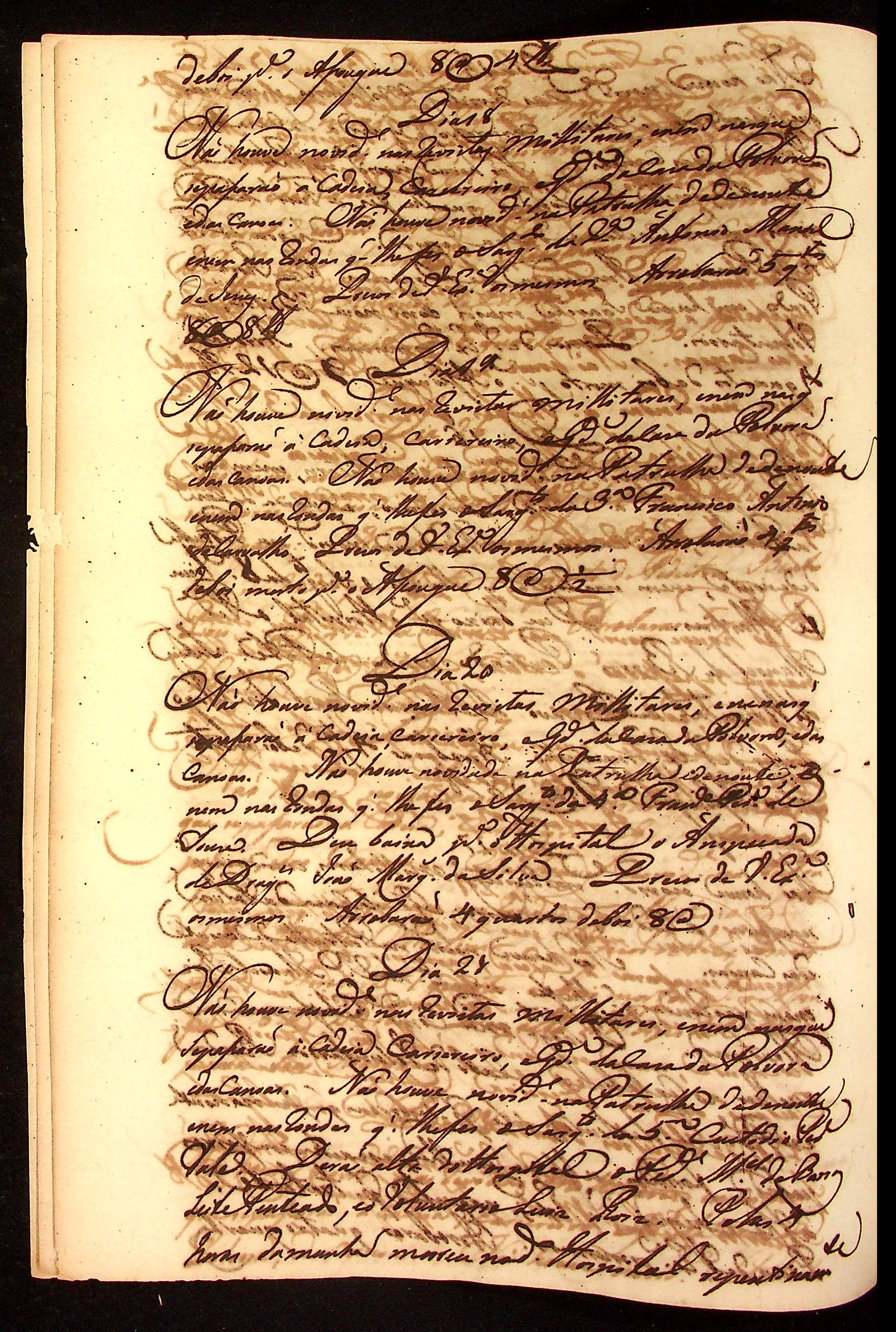 MEMÓRIA das novidades acontecidas diariamente no Quartel Militar de Vila Bela assinadas pelo Comandante Manoel Rebelo Leite.