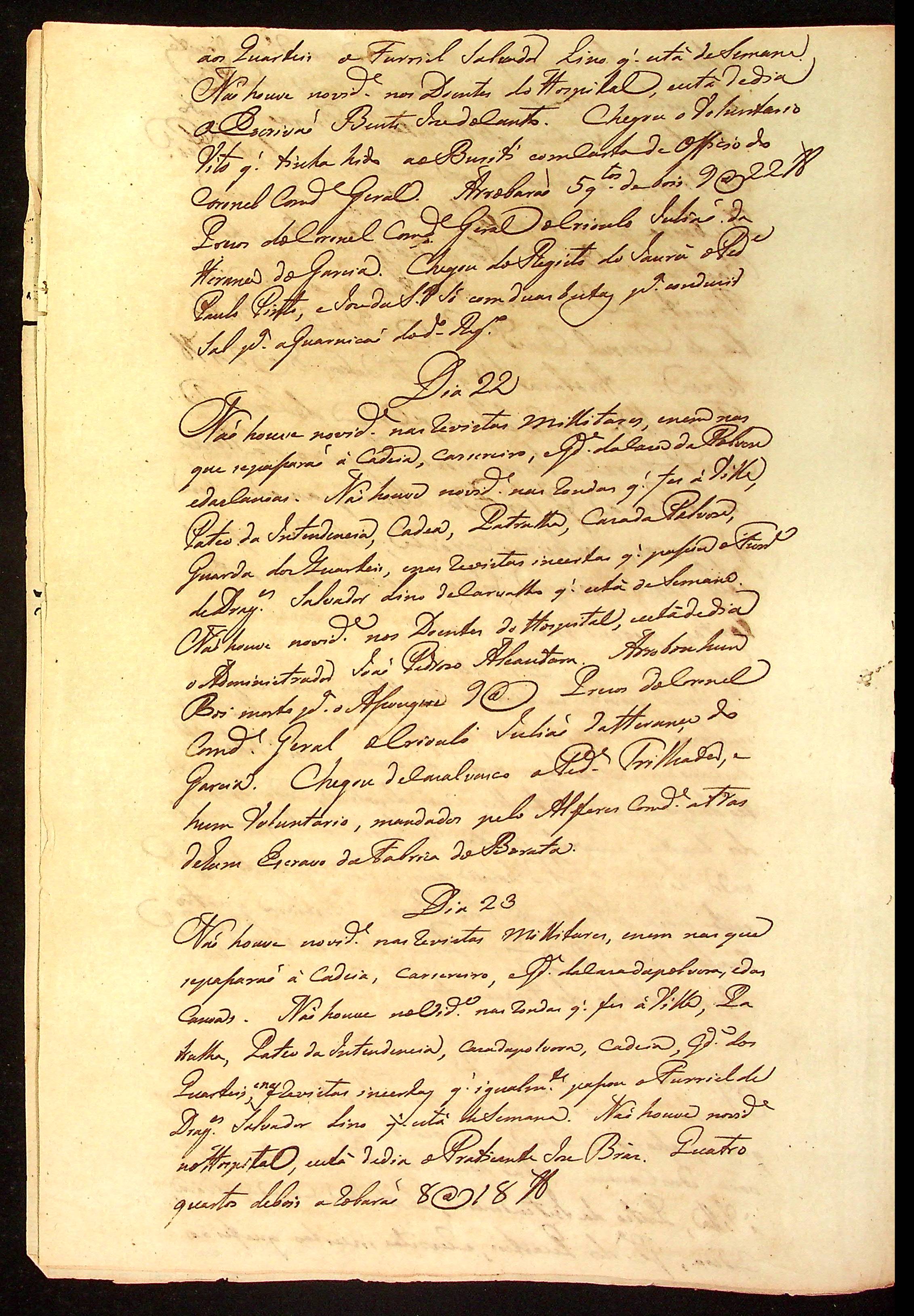 MEMÓRIA das novidades acontecidas diariamente no Quartel Militar de Vila Bela assinadas pelo Comandante Manoel Rebelo Leite.
