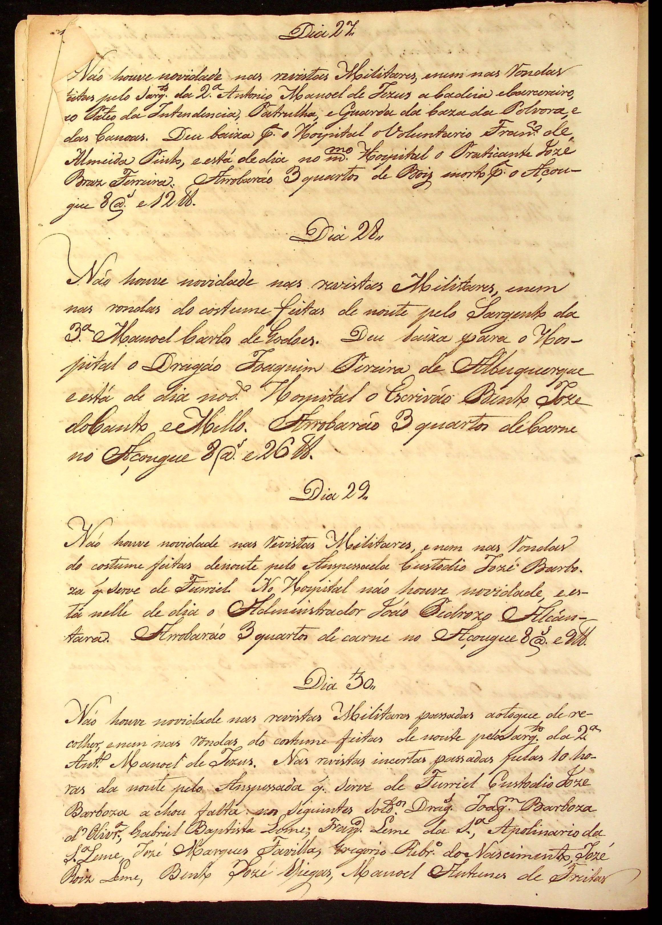 MEMÓRIA das novidades acontecidas diariamente no Quartel Militar de Vila Bela assinadas pelo Comandante Manoel Rebelo Leite.