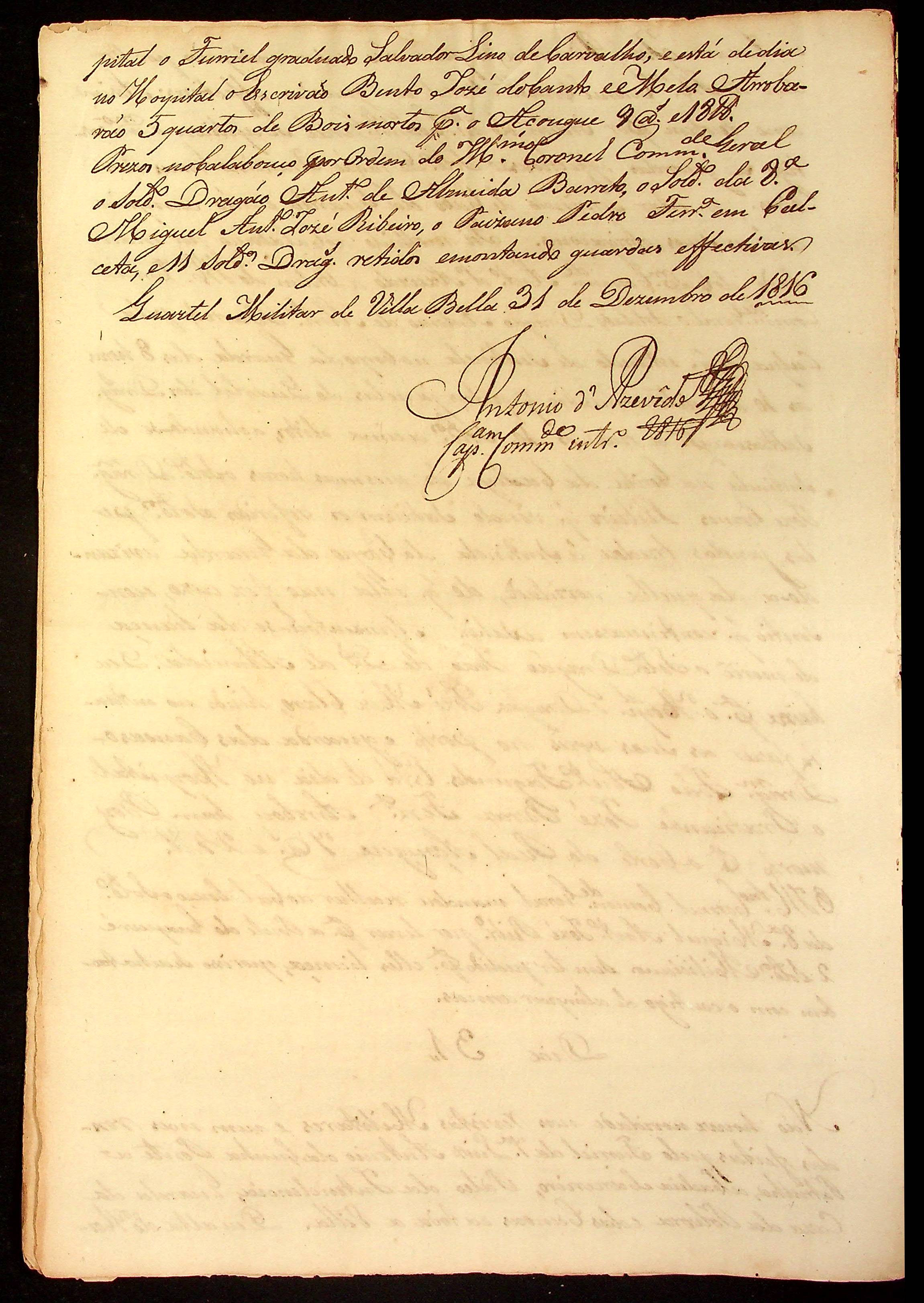 MEMÓRIA das novidades acontecidas diariamente no Quartel Militar de Vila Bela assinadas pelo Comandante Manoel Rebelo Leite.