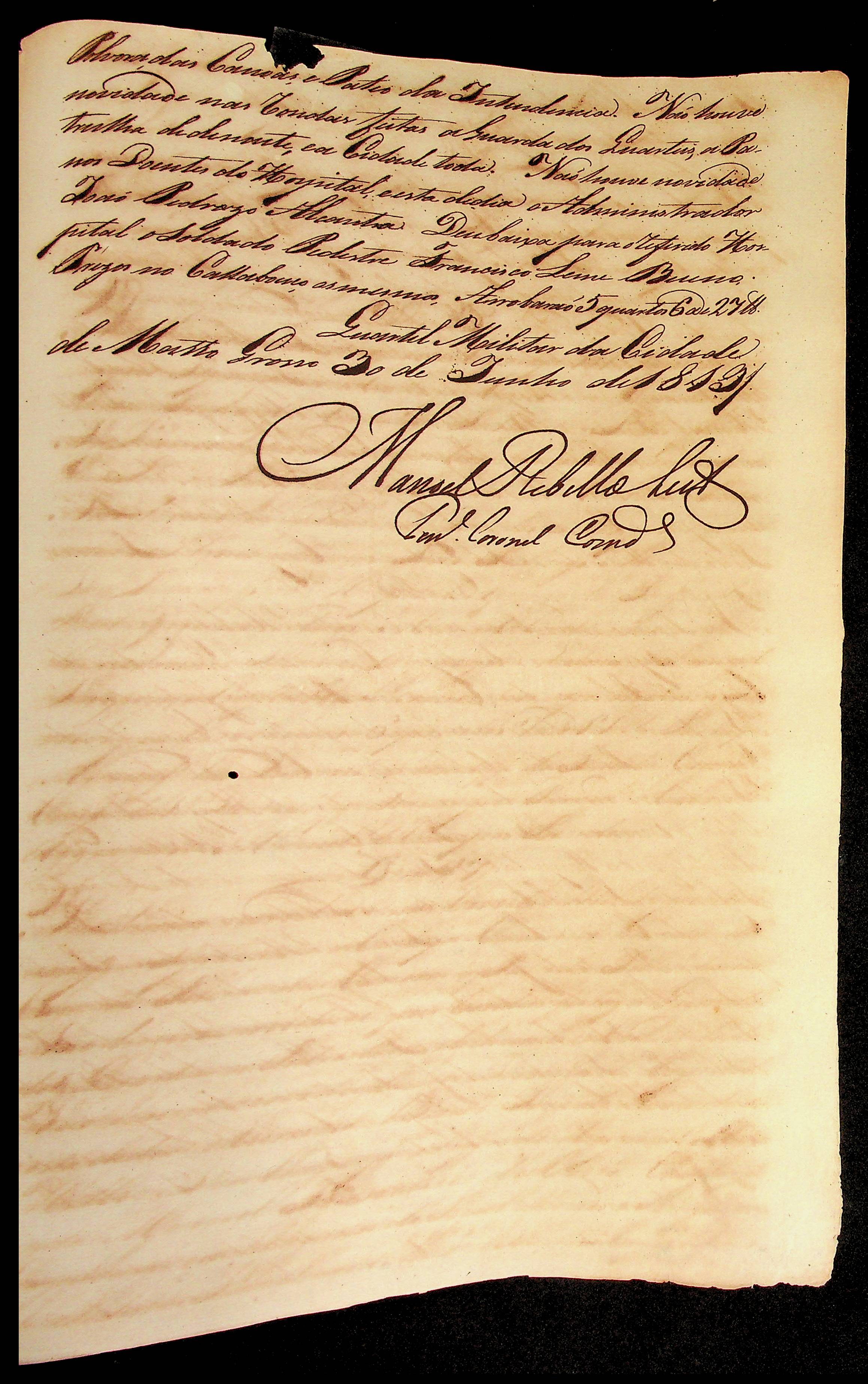 MEMÓRIA das novidades do Quartel Militar de Vila Bela dos meses de Fevereiro a Dezembro, assinado pelo Comandante Manoel [Rabelo] Leite.