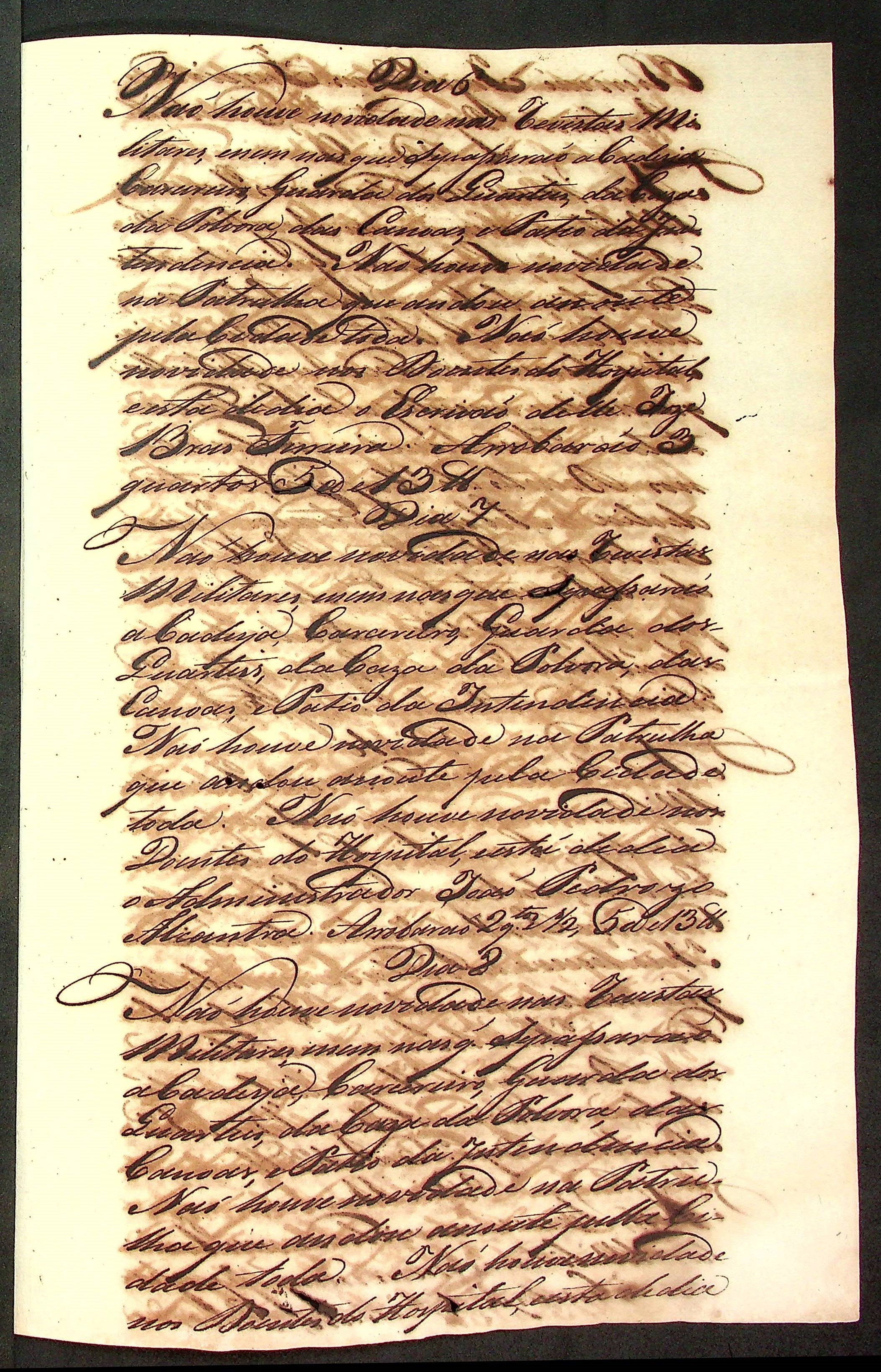 MEMÓRIA de partes das Novidades do Quartel de Mato Grosso assinado pelo 1ª Tenente Comandante Justino Gonçalves Campos.